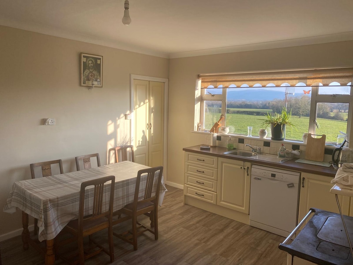Located 1.5 Km outside Ballyporeen on a quite cul-de-sac nestled in the scenic surroundings of the Galtee mountains and the Knockmealdowns. This old renovated farmhouse provides comfortable accommodation for anyone wishing to explore the area with its many historical sites and attractions for those who love the great outdoors. Just 2km from Mitchelstown cave and 4 km from the Galtee mountains, Alice’s farmhouse is located close to a working dairy farm where cows and hens may pass by.