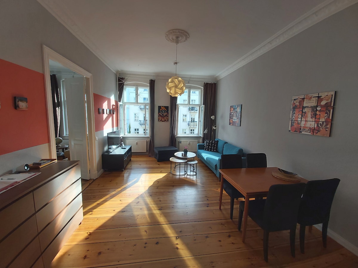 Maliwanag, maluwag at gitnang 1st floor apartment (65 m2/700 sqft) na may napakabilis na WIFI, 2 minuto mula sa U - Bahn Eberswalder Strasse. Ang tahimik na oasis na ito sa gitna ng Prenzlauer Berg ay may magiliw na inayos na mga orihinal na tampok, isang modernong kusina na may kumpletong kagamitan, medium - firm Boxspring bed, fan ng silid - tulugan, memory foam at down na unan, down duvet, at mga kurtina ng blackout. Mga cafe, restawran, shopping, nightlife, pasyalan – lahat sa iyong pintuan. Mainam para sa mga mag - asawa, walang kapareha, at business trip. Mainam para sa LGBTQ+. 🌈