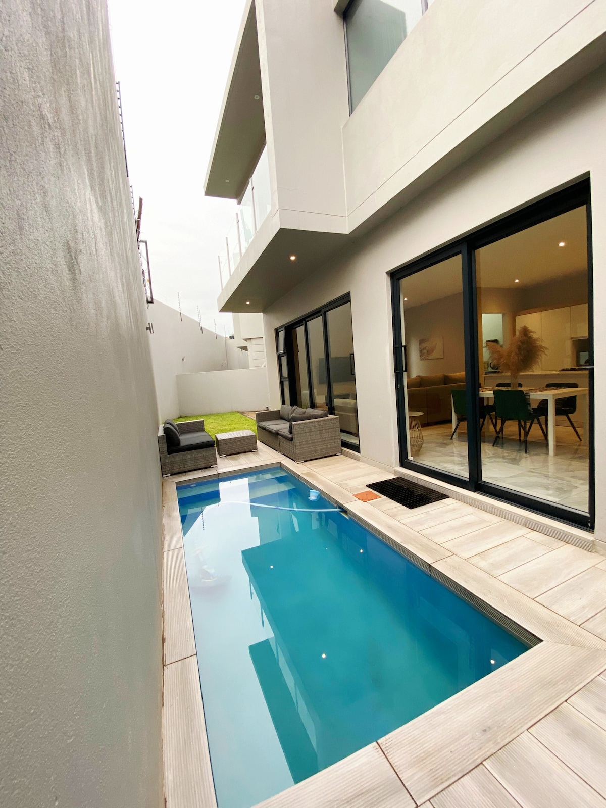 Mag-enjoy sa elegante, ligtas, at komportableng pamamalagi sa sentro ng Sandton sa maluwang na nakapag-iisang tuluyang ito na nasa gated at may kontroladong access na complex sa Morningside. Mainam para sa mga business traveler, pamilya, at mas matatagal na pamamalagi, nag‑aalok ang tuluyan ng modernong kaginhawaan na may mga pangunahing kagamitang South African, kabilang ang backup na solar power at reserbang sistema ng tubig para sa walang aberyang pamumuhay kapag may load shedding. Magrelaks sa tahimik at pribadong lugar na ilang minuto lang ang layo sa Sandton City, sa Gautrain, at sa mga pangunahing distrito ng negosyo.