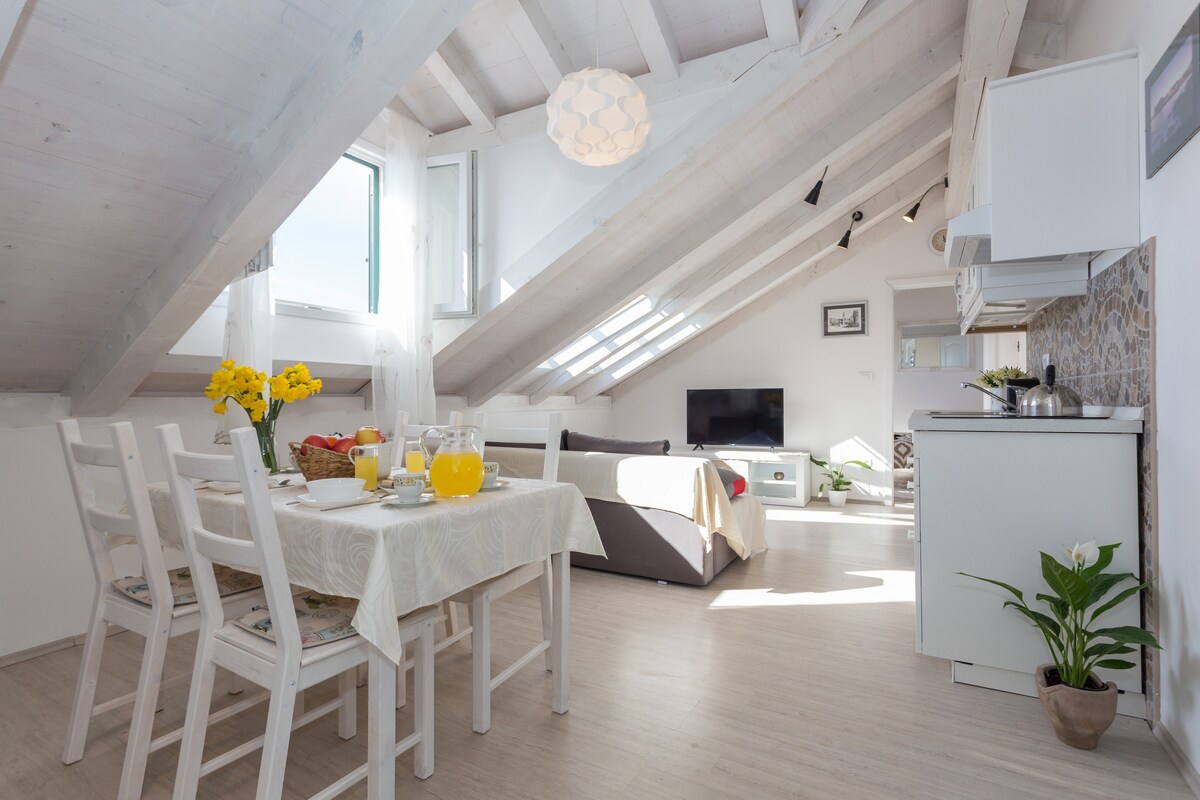 Matatagpuan sa isang kapitbahayan, ang isang silid - tulugan na loft na ito na may pull out sofa ay natutulog hanggang 4 na may kamangha - manghang malalawak na tanawin ng Old Town, mga beach at maraming iba pang mga pangunahing makasaysayang lugar na mag - iiwan sa iyo ng hininga. Simulan ang iyong umaga na may kape sa balkonahe habang pinapanood ang wake ng Old Town, naghahanda ang mga mangangalakal para sa mga turista at cruise ship ferry sa kanilang mga bisita. Sa loob ng ilang minuto, sa pamamagitan ng paglalakad, maaari mong tuklasin ang lumang makasaysayang Bayan, ang ilan sa mga pinakamahusay na beach sa Europa o lumamon sa lokal na pastry.