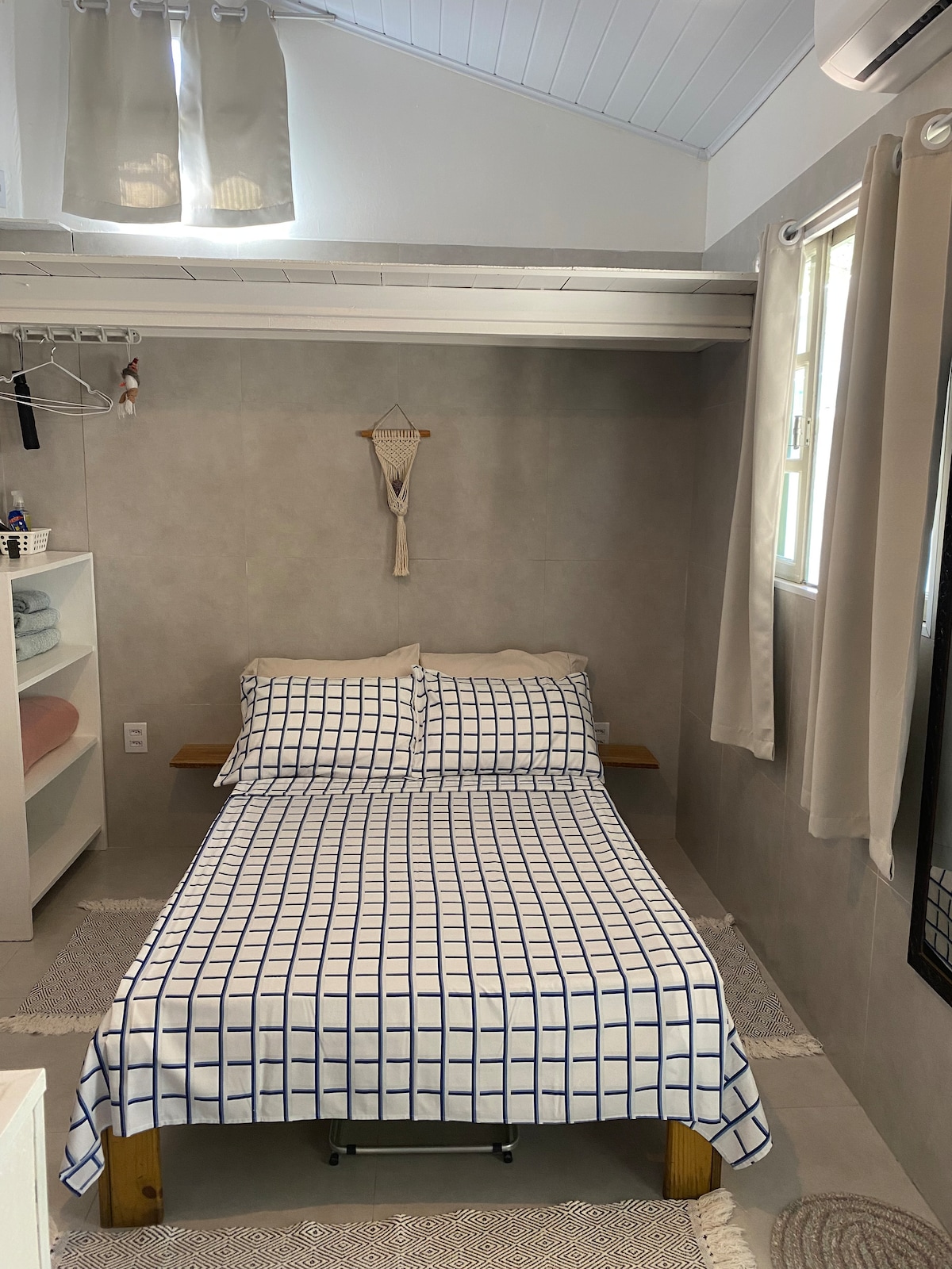 Maginhawang studio na may hardin at pribadong barbecue area. Nilagyan ng kusina, air - conditioning, malinis na linen at espesyal na hawakan na may kaibahan. Inaasikaso namin ang mga detalye para mag - alala ka lang tungkol sa pagrerelaks. Malapit kami sa Lagoa da Conceição, isa sa mga pinaka - kaakit - akit na rehiyon ng isla — na may madaling access sa mga beach, trail, restawran at merkado. At siyempre, palagi kaming handang magbahagi ng mga lokal na tip na mga nakatira lang rito ang nakakaalam.