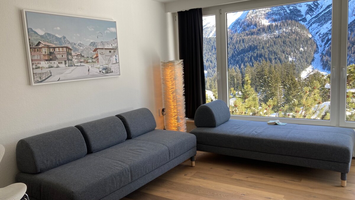 Naka - istilong at tahimik pati na rin ang napaka - komportableng studio apartment sa isang sentral na lokasyon na may tanawin. 4 na minutong lakad papunta sa istasyon ng lambak at sa village square sa gitna. Matatagpuan ang apartment sa 1750 m.ü. sea Madaling mapupuntahan sa pamamagitan ng tren sa pamamagitan ng Chur (1h) (5 minutong lakad mula sa istasyon ng tren). Mga 3 minutong lakad papunta sa Obersee at sa Untersee (swimming lake na may magandang kahoy na swimming pool). Maaaring may paradahan sa bahay kapag hiniling. Mayroon ding pampublikong paradahan at paradahan sa malapit.