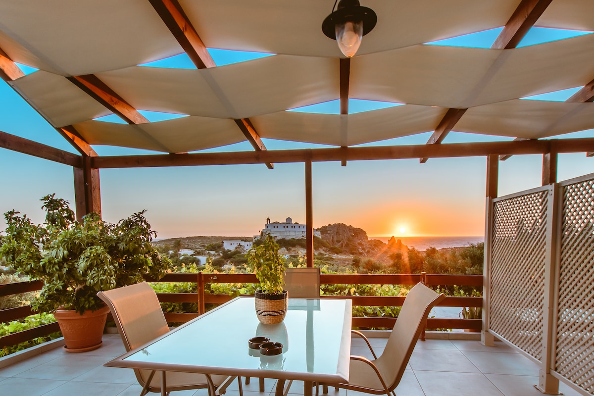 Ang apartment ay 35 ", brand new, matatagpuan sa Chrisoskalitissa village ,5km ang layo mula sa sikat na Elafonisi beach. Ang % {bold ay binubuo ng isang silid - tulugan na may king size na kama, isang sofa, isang kitchenette at isang banyo. Mayroong terrace na may kamangha - manghang tanawin ng dagat, ang Chrisoskalitissa Monastery at ang paglubog ng araw sa harap ng iyong kuwarto. Sa nayon maaari kang makahanap ng mga restawran at mas maliit na mga beach, bisitahin ang Monastery o pumunta para sa isang maikling lakad sa paligid ng lugar. Ikagagalak naming tulungan ka sa anumang bagay na kailangan mo sa panahon ng iyong pamamalagi!