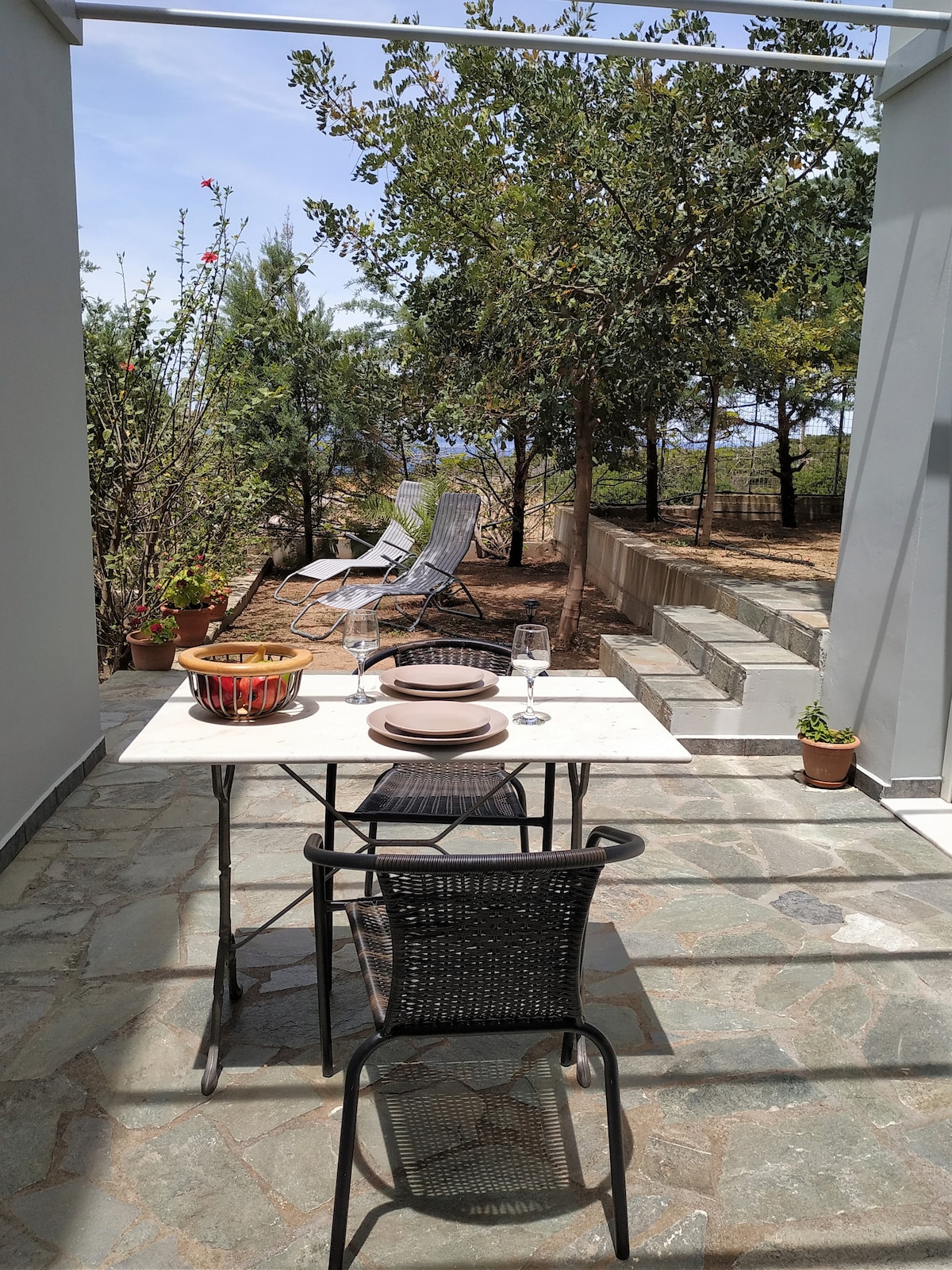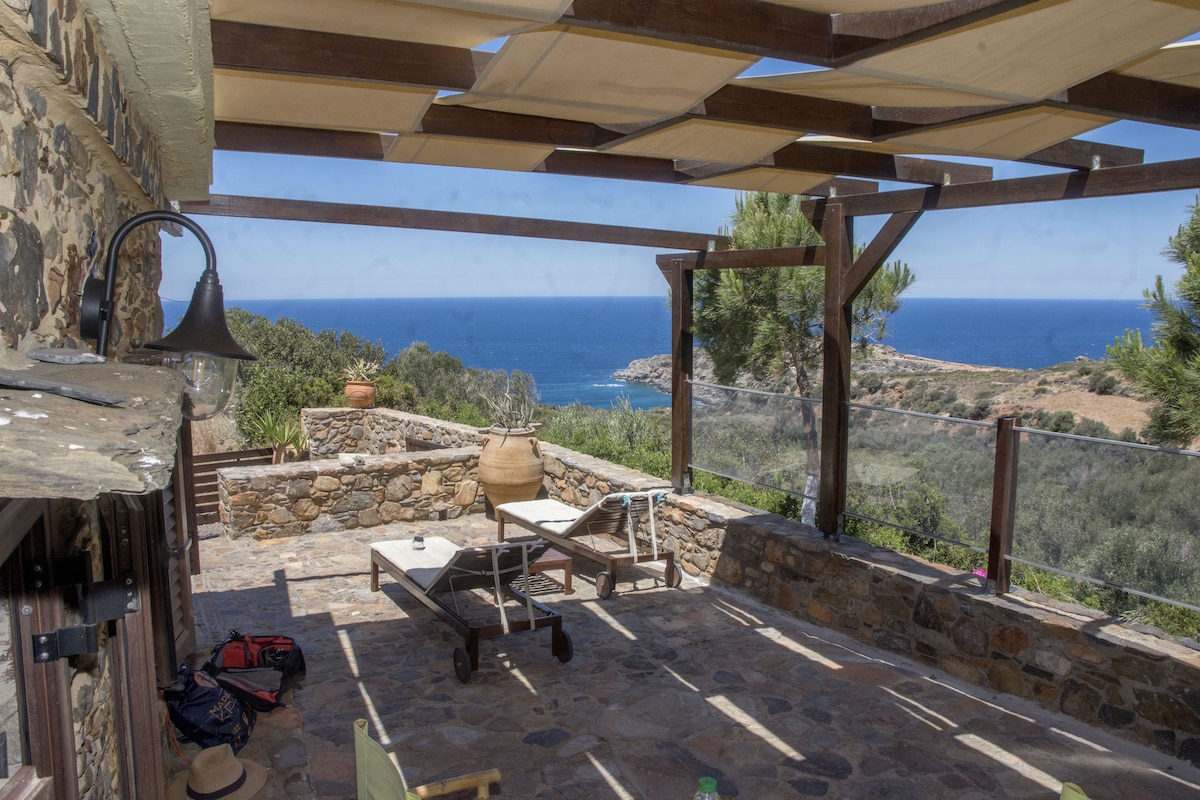 Ang Stone House ay nasa isang maganda at mapayapang kapaligiran na may kamangha - manghang tanawin sa dagat, sa mga bundok at may hindi kapani - paniwalang paglubog ng araw. Ang pinakamalaking bentahe ng Stone House , ay ang perpektong paghihiwalay na nag - aalok. Matatagpuan ang 55 metro kuwadrado na bahay sa 3000 metro kuwadrado na pribadong lupain na ginagawang mainam para sa walang aberyang bakasyon , na direktang nakikipag - ugnayan sa kalikasan at malayo sa tao sa tuwing gusto mo ito