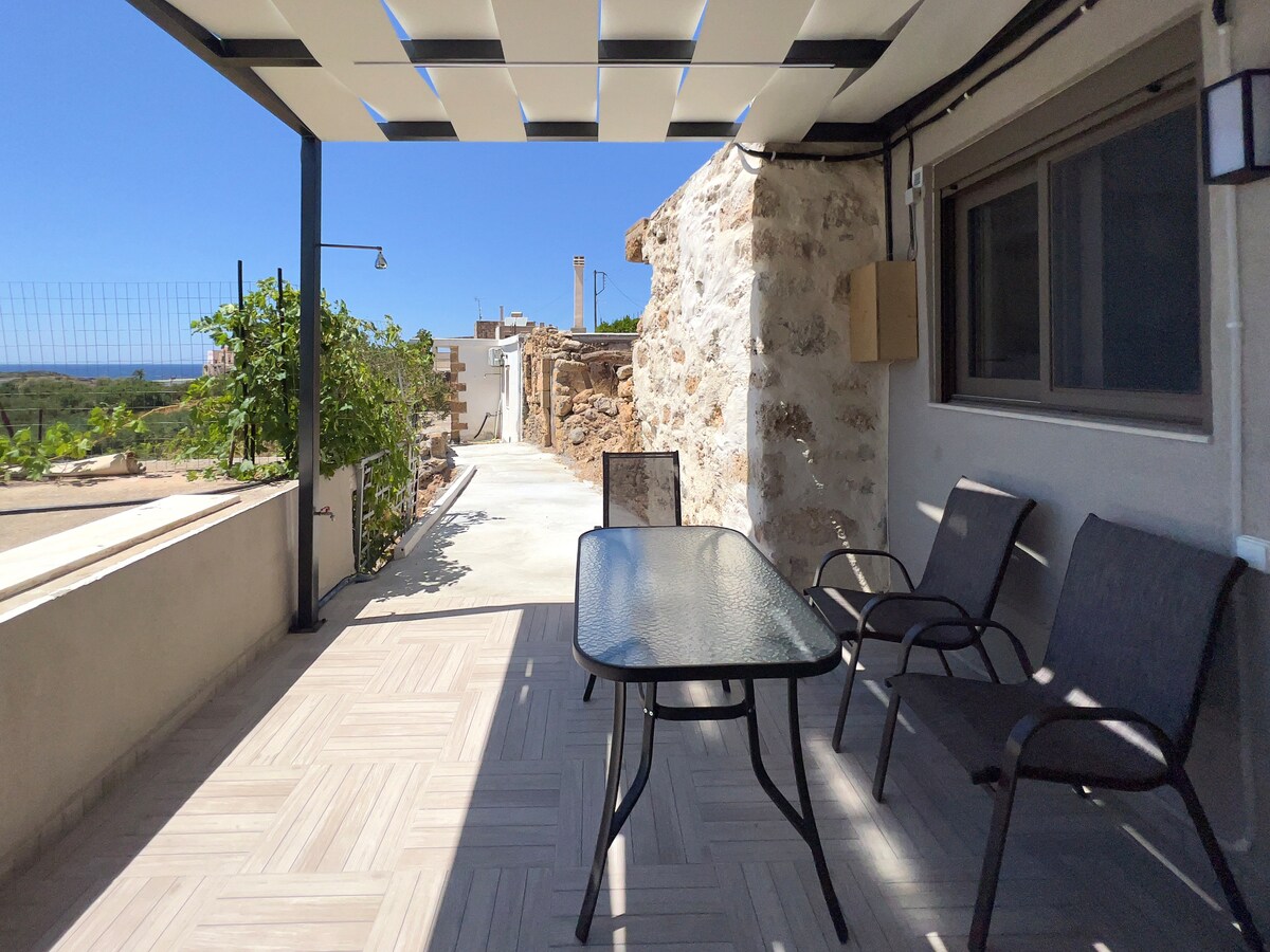 Ang apartment na Anaxagoras ay binubuo ng isang open - plan residential complex at nailalarawan sa pamamagitan ng isang kahanga - hangang orihinal na Venetian arch, na naghihiwalay sa kusina at sala mula sa pagtulog. May direktang access ito sa iyong (pribadong) hardin na may barbecue at malaking dining table na may tanawin ng dagat. Ang lahat ay na - renovate nang may labis na pagmamahal para sa mga tradisyonal na detalye sa 2017. Dito maaari kang huminga ng isang touch ng kasaysayan ng Cretan sa isang natatangi at komportableng kapaligiran.