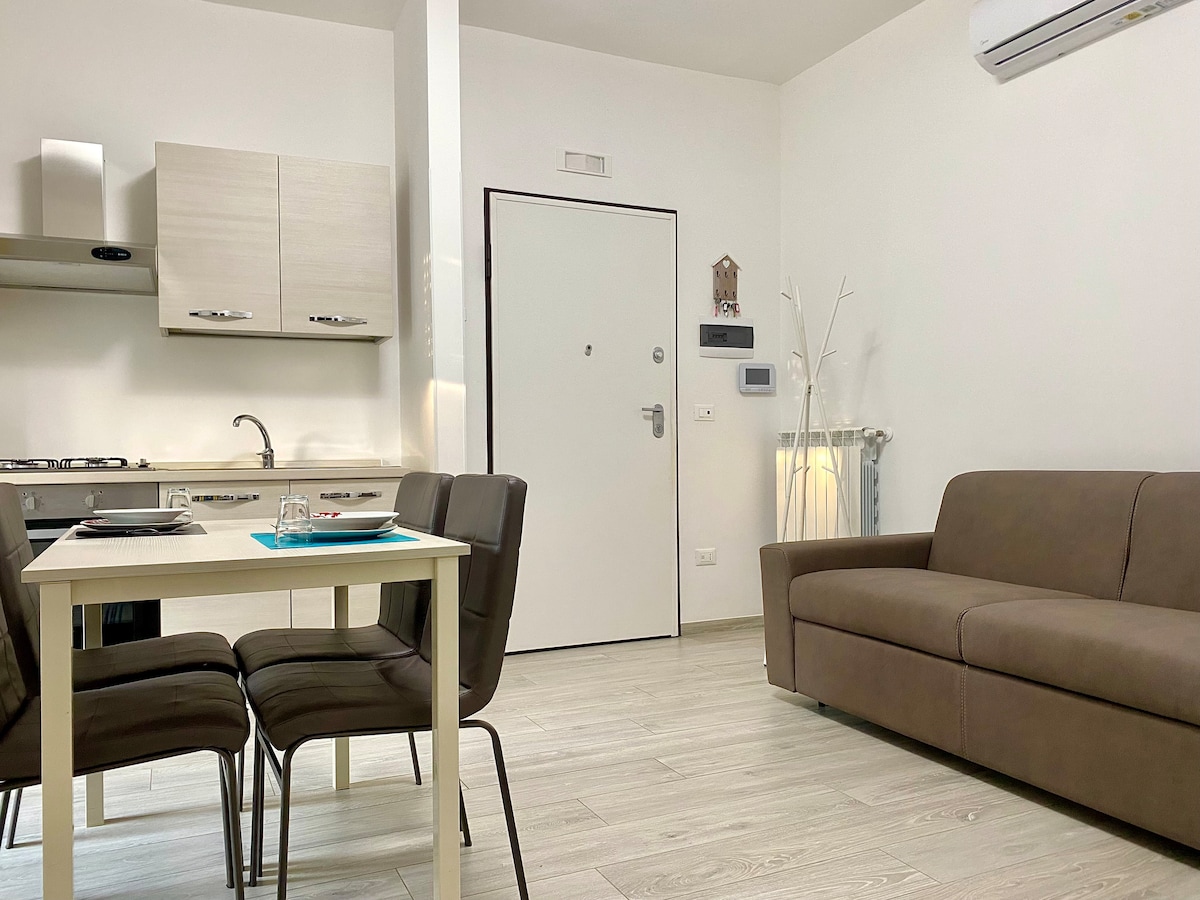 Ang "GIADA" ay isang eleganteng at pinong apartment na matatagpuan sa isang sinaunang gusali, na nilagyan ng estilo at functionality para salubungin ang mga biyahero mula sa iba 't ibang panig ng mundo. Tuklasin ang sentro ng Puglia, na matatagpuan sa isang pribilehiyo na posisyon ilang hakbang lang ang layo mula sa mga nakamamanghang beach ng Monopoli at 1 minuto lang mula sa mapagmungkahing Fishermen's Port at sa kultural na lugar ng Carlo V Castle.