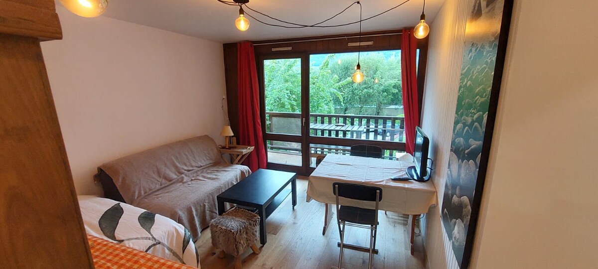 4.92 sa 5 na average na rating, 87 reviewPassy hillside , Mont Blanc na nakaharap sa studio na may balkonahe.