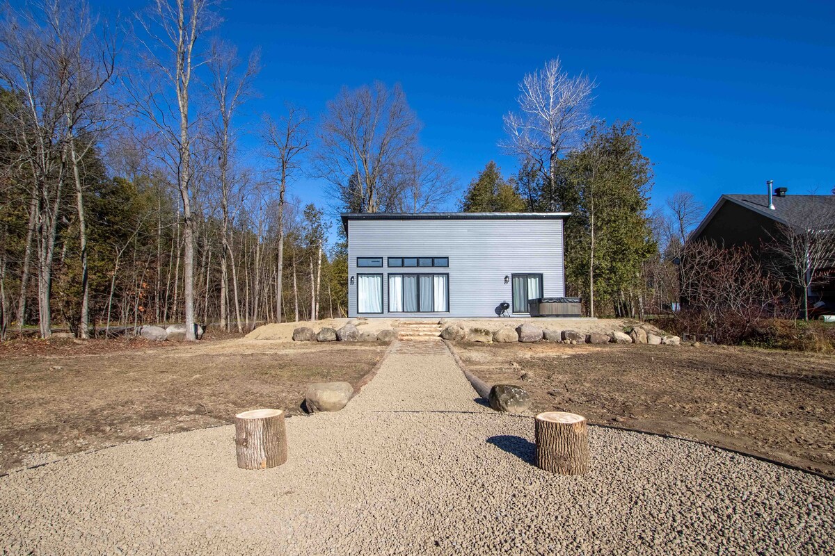 Ang aming Nordic forest chalet ay perpekto para sa paggugol ng kalidad ng oras bilang mag - asawa (o kasama ang isang bata), o para sa isang work - retreat (na may high - speed WiFi). Mainit at komportable ang interior na gawa sa kahoy. Nag - aalok ang mga bintanang may buong taas ng mga nakamamanghang tanawin sa lambak ng kagubatan. Pinapanatili ka ng open - concept na kusina at sala sa pag - uusap habang nagluluto. Kung mas gusto mong magluto sa labas, may fire pit na may grill at outdoor dining table. 70 minutong biyahe lang mula sa Montreal. 25 minutong lakad ang lawa kung magpaparada ka sa malapit.