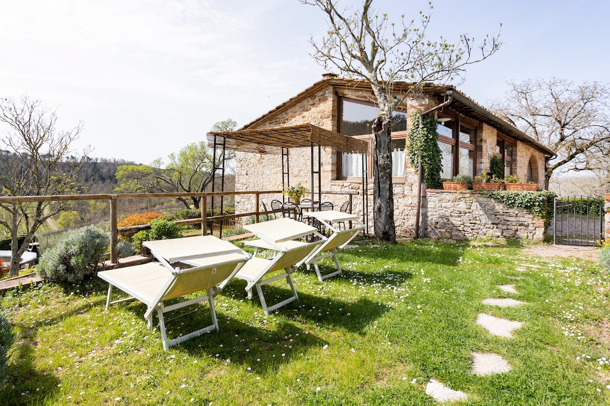 Nakamamanghang apartment sa gitna ng Tuscany na makikita sa gitna ng mga baging at puno ng olibo. Ang apartment ay ganap na inayos na pinapanatili ang magagandang lumang tampok, beamed ceilings, marble floor na may mga antigong kasangkapan. Ang mga pinto ng patyo ay papunta sa pribadong terrace na may mga sun lounger para sa pagrerelaks at espasyo. Sa mesa at upuan, puwede kang kumain ng 'Al fresco' na tinatangkilik ang magagandang tanawin.