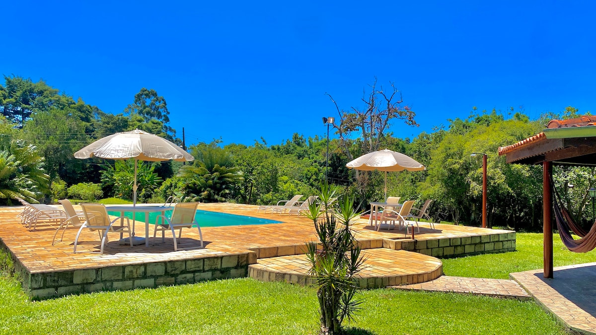 Ininagurahan noong Disyembre 2023, pinagsasama ng Rancho Mirante da Serra ang kaginhawaan, kalikasan at pagiging sopistikado sa isang pribilehiyo na lokasyon, na humigit - kumulang 6 na km mula sa sentro ng lungsod. Ang hydromassage na may chromotherapy, swimming pool na may solar air conditioning at floor fire ay ilang atraksyon para sa taglamig! Nakadepende ang naka - air condition na swimming pool sa mga kondisyon ng panahon at paggamit ng thermal cover, na ginagawang kasiya - siya para sa pagsisid. Nasa tuktok ng bundok ang aming tuluyan, na may mga tanawin ng kalikasan.