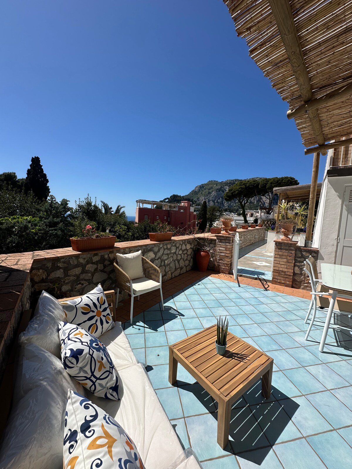 Buksan ang malalaking French na pinto ng sala at silid - tulugan at lumabas papunta sa kahanga - hangang hardin ng villa na ito, mabibighani ka sa oasis ng kapayapaan at kagandahan na ito at higit sa lahat isang kahanga - hangang tanawin ng dagat ng Capri, ang nayon at ang Certosa di Capri. Ang villa, maliwanag at mainam na inayos, ay may bentahe ng pagiging ganap na malaya. Matatagpuan malapit sa kaakit - akit na Piazzetta (500mt/6 -8min) at mga pangunahing atraksyon, malayo ito sa ingay para makapagpahinga ka sa malalawak na hardin.