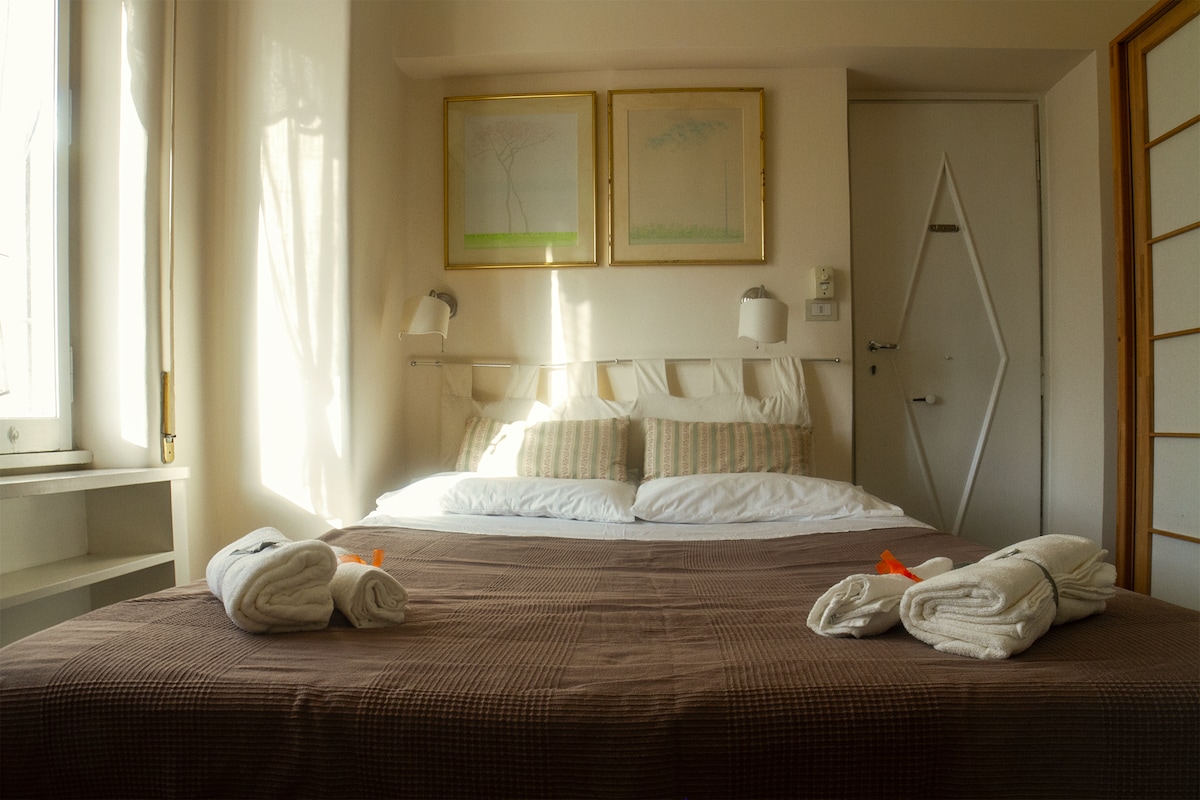 Ang tanging eksklusibo at marangyang palasyo na tinatanaw ang Roman Forum na may bukas na tanawin ng Sinaunang Rome tulad ng sa mga litrato. Tamang - tama para sa mga romantikong biyahe, para sa1couple +1child, para sa mga business trip (mabilis at libreng WiFi). Puwede kang uminom ng alak sa harap ng hindi malilimutang paglubog ng araw, mag - almusal/hapunan na may natatanging tanawin. Pampered sa pamamagitan ng hindi mabilang na kaginhawaan at sa pamamagitan ng maginhawang kapaligiran nito, ikaw ay ilang hakbang mula sa pinakamahalagang monumento at magagandang restaurant/bar/pub. Puwede akong mag - organisa ng maaga at late na pag - check in at pag - check out