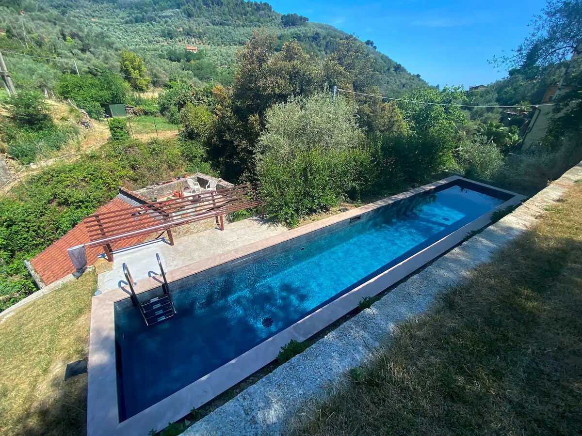 Nakaayos sa dalawang palapag, ang SASSO6 ay konektado sa pamamagitan ng isang hagdan na may magagandang kisame at slate na hagdan na isinusuot nang maayos sa paglipas ng mga siglo. Dalawang napakalaking double bedroom at isang maliit na en suite na silid - tulugan ng mga bata ang madaling tumanggap ng dalawang pamilya. Napapalibutan ng mga bush at puno ng oliba, ang tubig sa bundok ng pool ay nililinis ng electrolysis at asin, kaya halos walang klorin. Ang kalidad ng tubig at lokasyon ay lumilikha ng isang ligaw na karanasan sa paglangoy, hindi tulad ng isang karaniwang pool ng resort.