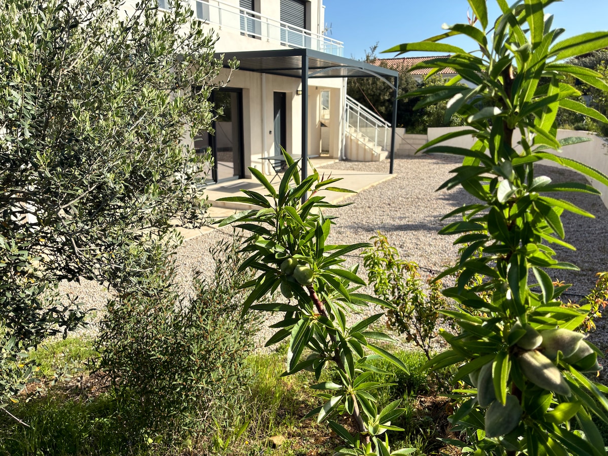 apartment sa villa 5 min mula sa dagat sa tahimik na subdivision. 55 m2, 3 kuwarto, 2 silid-tulugan, 1 banyo na may wc, kumpletong kusinang Amerikano, 1 sala, barbecue, mesa at upuan sa hardin, payong, 2 sunbed. air conditioning sa lahat ng kuwarto, sentro ng lungsod 2 min max sa pamamagitan ng kotse, o pag-access sa pamamagitan ng paglalakad sa tabi ng dagat posibilidad ng paglangoy sa daan (lubhang pinahahalagahan ng mga nagbabakasyon.)10 minuto lang ang lakad papunta sa magandang beach ng pulang isla