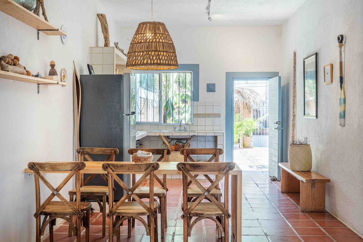 Naghihintay ang iyong perpektong bakasyunan sa beach! Ang 2 - bedroom, 1 - bath casita na ito ay ilang hakbang mula sa beach at 5 minuto papunta sa central plaza. Masiyahan sa paddle - boarding, surfing, pangingisda, at kainan sa tunay na lutuing Mexican. Sa loob, makakahanap ka ng mga king - size na higaan, maluwang na sala na may Wi - Fi, at kusinang kumpleto ang kagamitan. Magrelaks sa hardin o sa ikatlong palapag na palapa na may mga nakamamanghang tanawin ng kagubatan. Malugod na tinatanggap ang mga alagang hayop! Sa maingat na bilingual na kawani, isang booking na lang ang layo ng iyong pangarap na bakasyon sa Lo de Marcos!