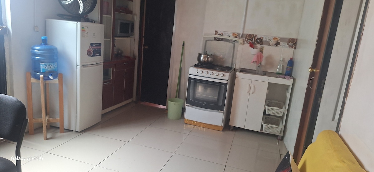 🌿 Bienvenidos a Chanchamayo 🌿 Hospédate en este acogedor monoambiente en 1°piso ideal para descansar y conectar con la naturaleza de la selva central y pasar momentos únicos en familia 🛏️Alojamiento cómodo y amplio 🛌 1 Cama matrimonial (2 plazas) 🛏️ 1 Camarote 👉 Primer nivel: cama de 2 plazas 👉 Segundo nivel: cama de 1 ½ plaza Capacidad 5 personas 📺 Entretenimiento & Conexión 📺 TV 60” con Netflix, Disney+, Amazon, HBO, Paramount, Crunchyroll y más 🌐 Internet 24/7