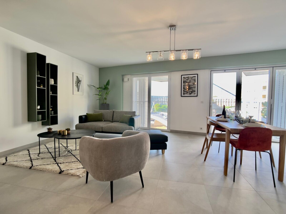 Mag - enjoy sa isang naka - istilong, sentral na tuluyan ♡ Matatagpuan sa hyper center na malapit sa maraming restawran at magiliw na parisukat. Elegante, maliwanag at na - renovate ng interior designer. Nag - aalok ang apartment na ito ng magandang sala, kusinang may kagamitan, kuwartong may high - end na 160X200 na higaan, en - suite na banyo, at hiwalay na toilet. Matatagpuan ang 4 na hintuan sa pamamagitan ng tram mula sa Gare Saint - Roch, 9 na minutong lakad mula sa Place de la Comédie at malapit sa Prefecture car park.