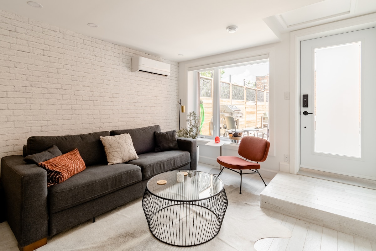 Plaza10 is a modern and stylish single bedroom apartment located in the heart of Rosemont la Petite Patrie (a borough 1 hour walk North or a 15 min public transit ride from downtown Montreal). It’s an area full of restaurants, cafés, shopping and entertainment, making it the ideal place to stay while exploring Montreal. The closest subway station is a 6 min walk away. The space features a fully-equipped kitchens, private terrace, heated radiant floors, electric fireplace in living room & bedroom