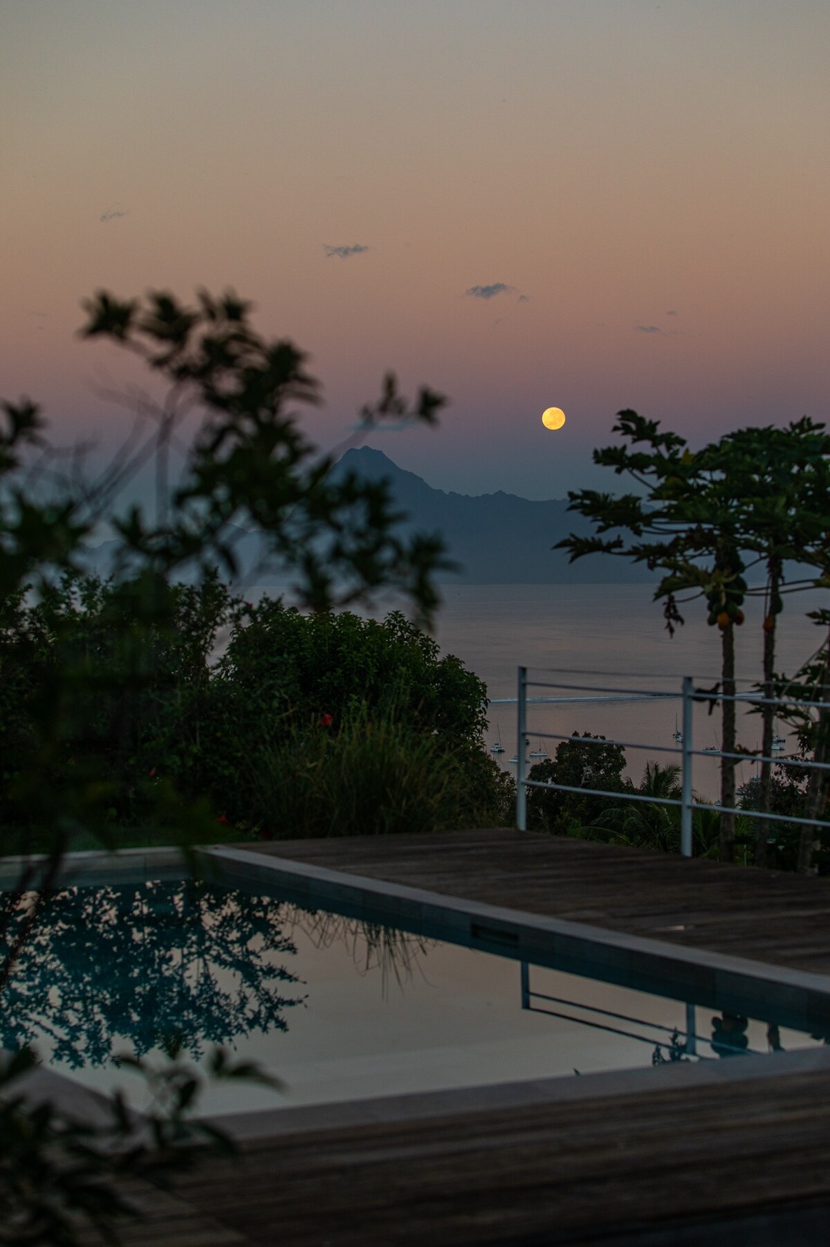 Mag‑enjoy sa pribadong bungalow na may malaking kuwarto, pribadong terrace, at banyo na para lang sa iyo. Mula sa tuluyan mo, humanga sa kagubatan sa paligid at sa tanawin ng Daungan ng Papeete sa taas na 400 metro. Sa mga common area, magagamit mo ang malaking terrace na may magagandang tanawin ng Moorea at paglubog ng araw, pati na rin ang pool at jacuzzi. Mayroon ding kusinang may kumpletong kagamitan na magagamit ng mga bisita. Libreng ligtas na paradahan