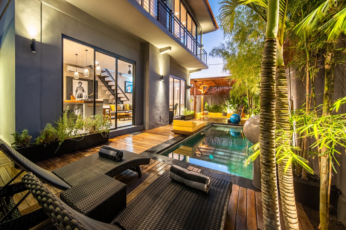 Mag - sunbathe sa paligid ng 10 metrong pribadong pool sa luntiang patyo ng tahimik na bakasyunan na ito. Pinagsasama ng tuluyang ito ang arkitekturang mid - century Californian sa tropikal na kakanyahan ng Bali. Itinayo ang mga muwebles sa bespoke at iniangkop para sa lugar na ito. PANGKALAHATANG PAALALA: Pagmamay - ari ko rin ang property sa tabi. Ang mga booking para sa parehong mga villa ay maaaring gawin kasabay ng mas malalaking grupo. Pakitingnan ang iba pang property sa ilalim ng aking profile.