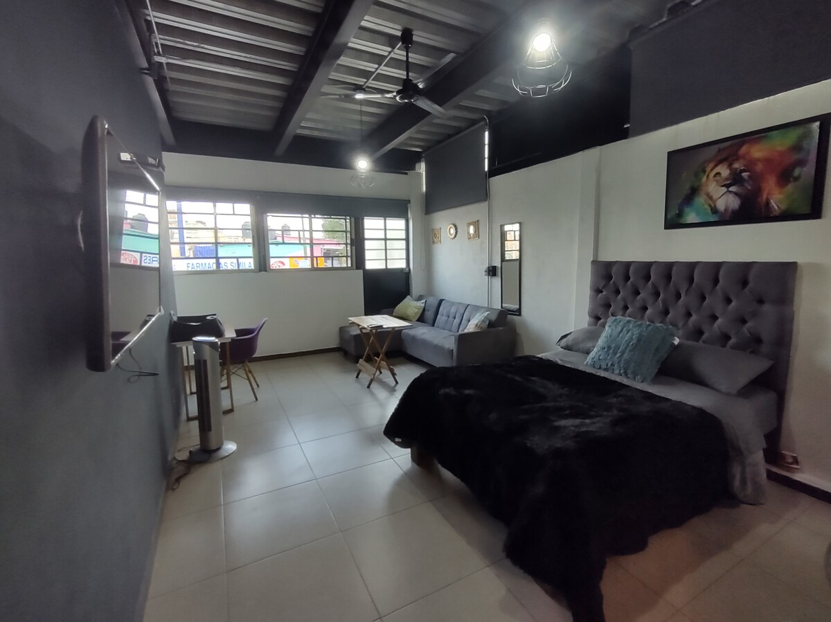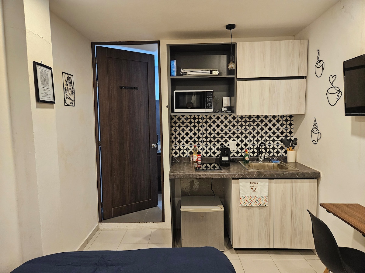 El Loft cuenta con cama tamaño KING SIZE (buen colchón), TV de 43", closet amplio y cocineta con parrilla de gas, utensilios de cocina, vasos, platos, cubiertos. La Habitación cuenta una ventana grande con vista panorámica el horizonte de la ciudad. Si traes vehículo puedes estacionarte afuera o a un lado del edifico, el barrio es muy tranquilo o existe una pensión a 2 cuadras ($80 la noche de 8 p.m a - 8 a.m ) El baño, cocineta, sala y cama son PRIVADAS. (no se comparten con nadie).