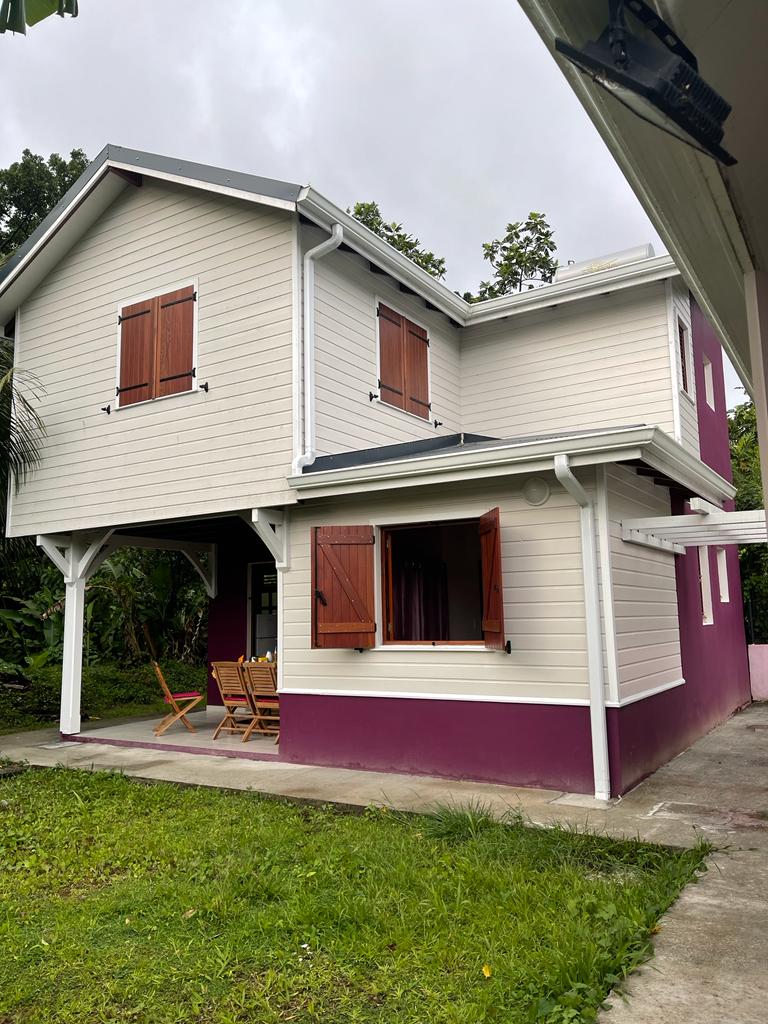 bungalow de 50m2 situé sur les hauteurs du carbet / saint pierre dans le nord de la martinique . Décor paradisiaque et luxuriant se trouvant environs à 10 min des deux communes ( st pierre / carbet) ainsi que des plages, vue 180° sur la mer et sur la célèbre Montagne Pelée . Pas de vis a vis avec un environnement calme et riche en verdure. possibilité de restauration sur commande*