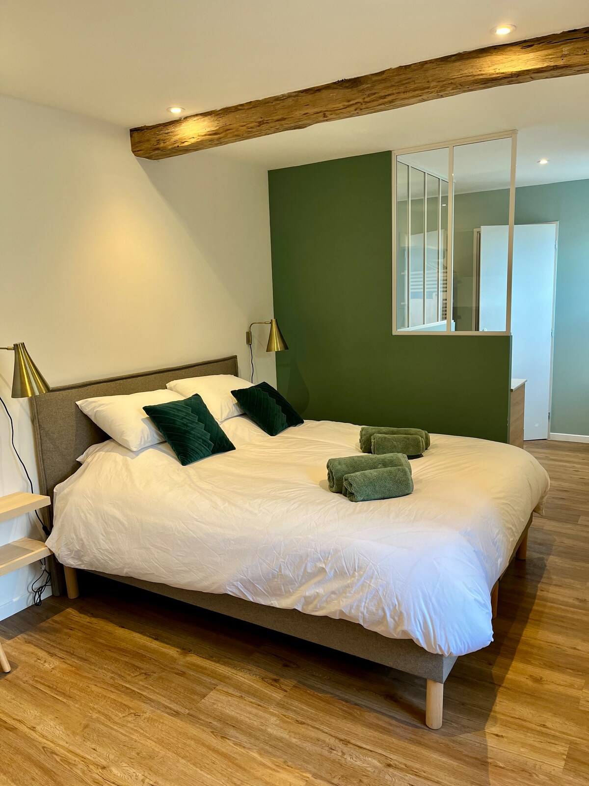 Posibleng may paradahan sa ilalim ng lupa na 200m /paradahan para sa bisikleta. Halika at manatili sa Chalon - sur - Saône sa makasaysayang sentro sa isang lugar na puno ng kasaysayan na nakaharap sa Belfry na inuri bilang makasaysayang monumento. Maginhawang matatagpuan ang 30m2 apartment na may hiwalay na silid - tulugan na ganap na na - renovate ng isang Arkitekto. Mahihikayat ka ng karakter ng lumang may mga pader na bato na may halong kaginhawaan at modernidad ng kusina na kumpleto sa kagamitan at banyo nito na may mga likas na materyales. Maraming amenidad.
