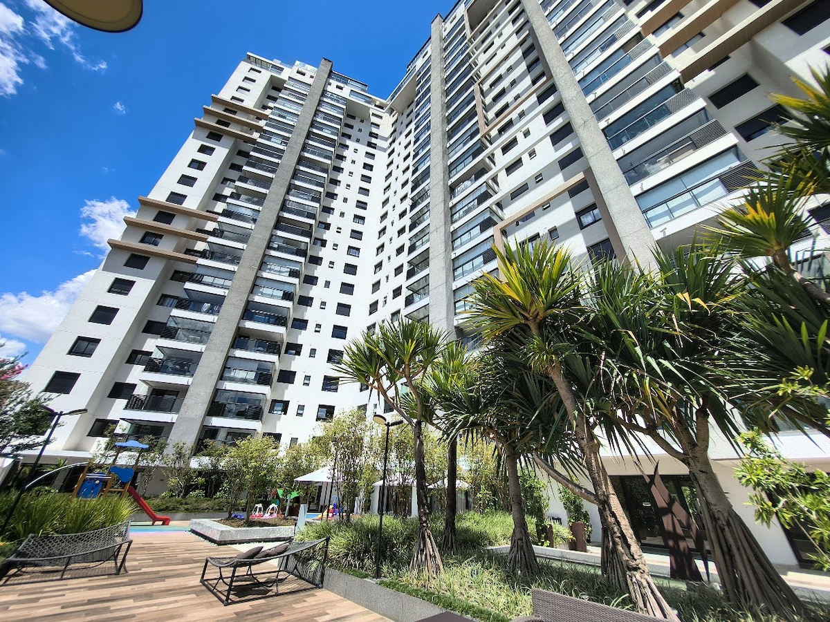 Wala pang 500 metro mula sa Botanic Garden ng Curitiba. Bilis ng Mega Fast Internet (500MB). Lahat ng kuwartong may aircon. Kusina na may dishwasher, refrigerator, microwave, hood, oven at kalan, lahat ay bago. Remote concierge. Paglalaba at pagpapatayo ng mga damit sa loob ng apartment. Mayroon kaming lahat ng kagamitan sa kusina para maramdaman mong komportable ka. Mga bed and bath suit. Shampoo/conditioner at body wash. Iron, hair dryer. Ang lugar ng garahe ay natuklasan na may dalawang espasyo.