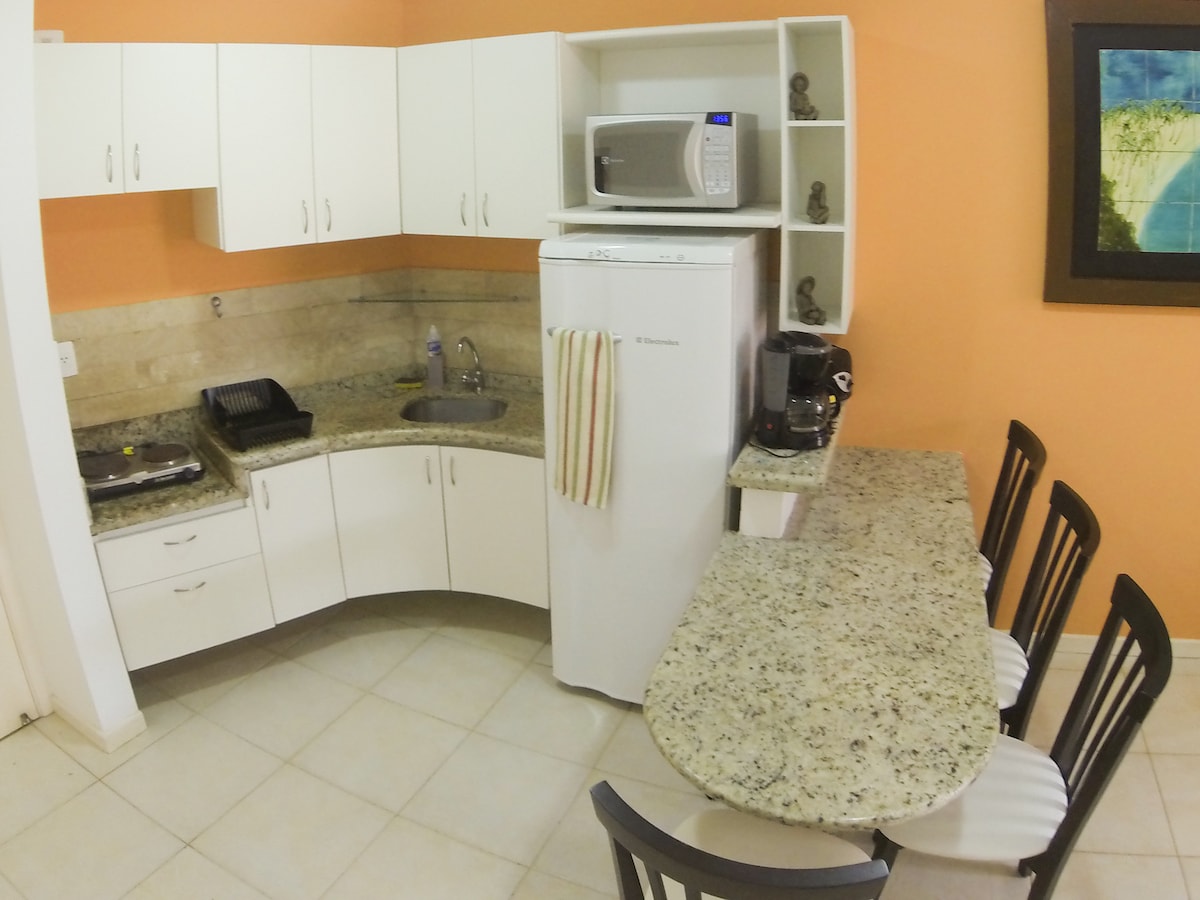 Apartment na matatagpuan sa heograpikal na sentro ng Ponta Negra Beach. Nagtatampok ito ng 2 Queen bed, tanawin ng karagatan mula sa bintana, banyong may mainit na tubig, TV, Wi - Fi, microwave, coffee maker, sandwich maker, air conditioning, at 24 na oras na reception. Kasama rin dito ang libreng paradahan ng garahe at swimming pool. Napakalapit sa mga restawran at lugar ng libangan. Available ang almusal sa parehong gusali (karagdagang bayarin).