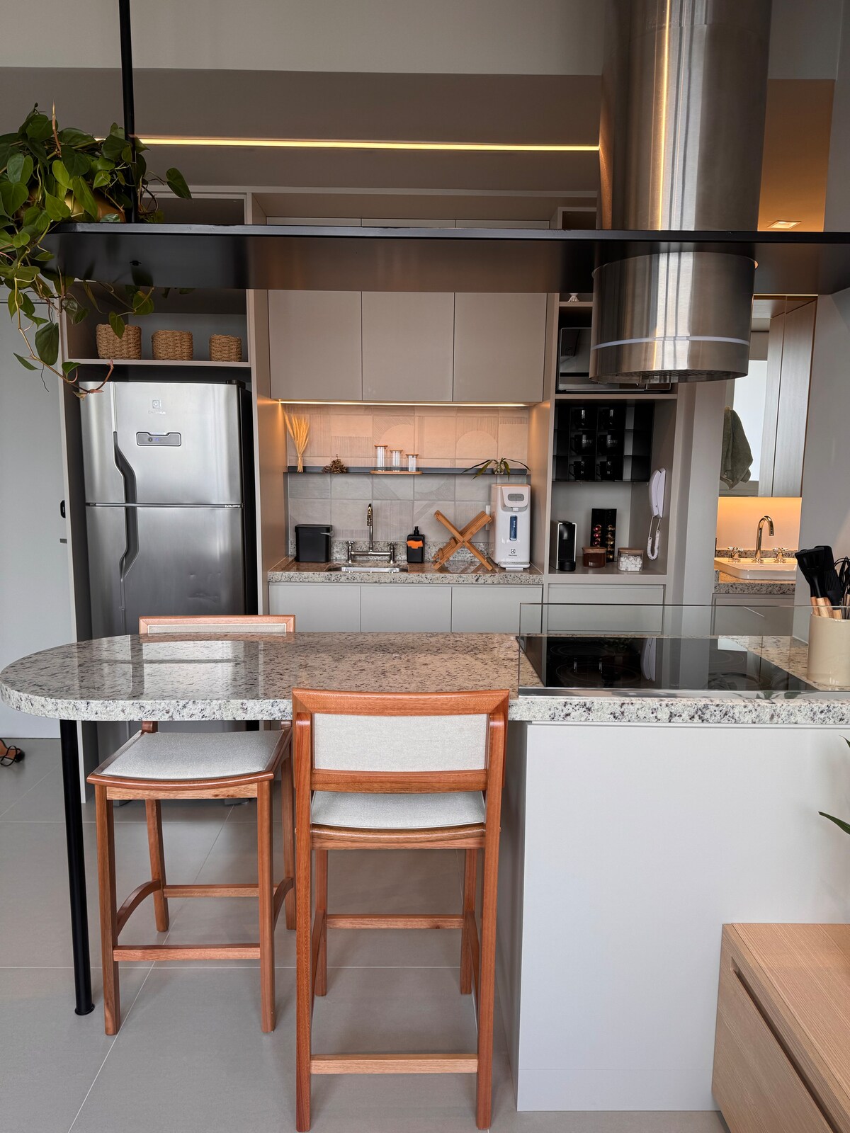 Futuristic apartment na may gourmet kitchen na nilagyan