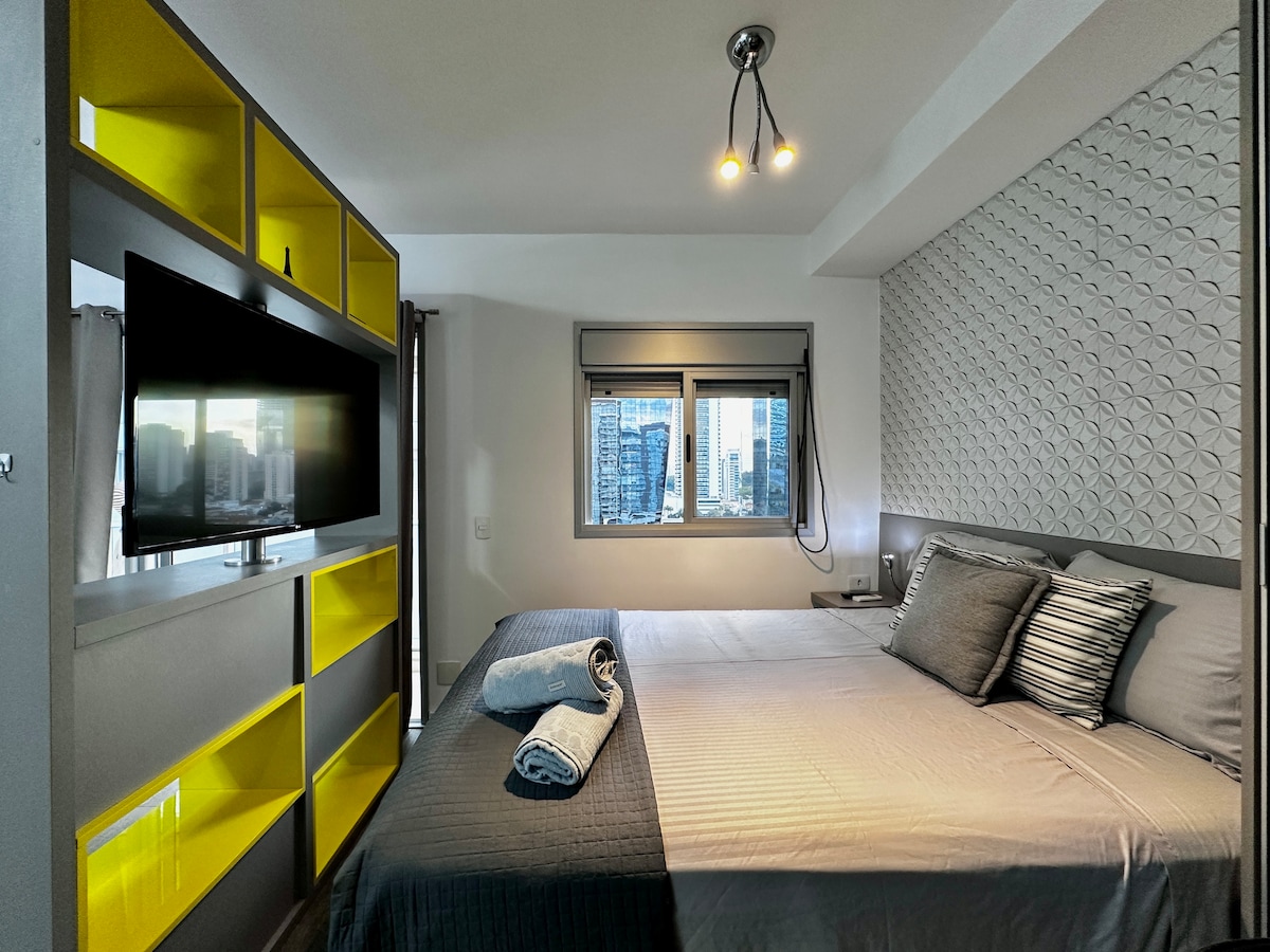 🚨 ATENÇÃO🚨 "SEGUNDO HÓSPEDE GRÁTIS". Studio muito bem localizado, 3 minutos (a pé) do Consulado Americano, 5 minutos da estação Morumbi CPTM, Shopping Morumbi e Marketing Place, 8 minutos do Metrô Borba Gato (a pé). Aqui o seu pet é bem vindo 🐶. Garagem dentro do condomínio, gratuita, coberta e rotativa com seguro. Studio CONEXÃO YOU/ADD, Nova Berrine. Se hóspede no mais novo Centro Empresarial de São Paulo. 📍Rua Henri Dunant, 1066. Chácara Santo Antônio.