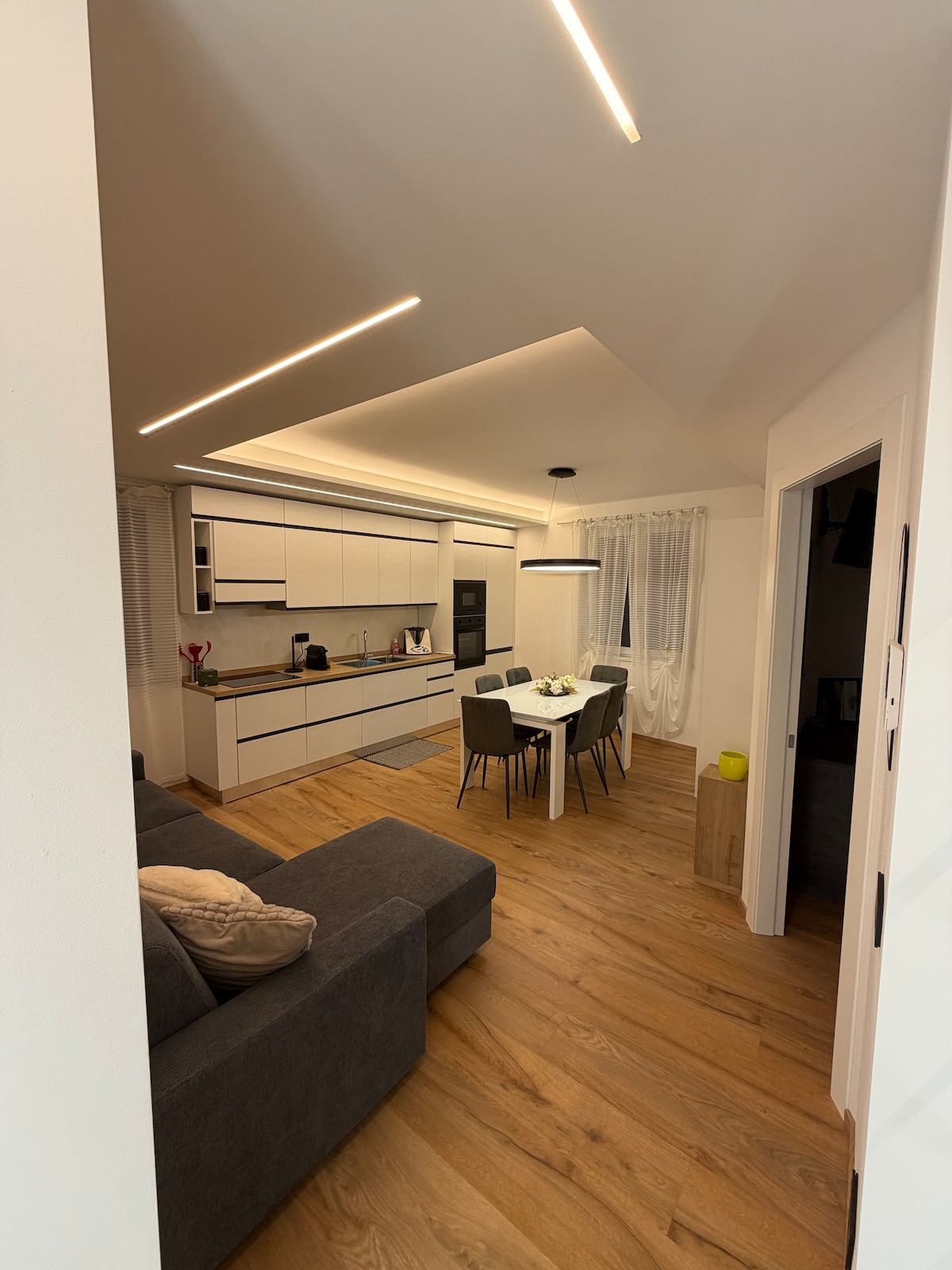 A bright, newly built penthouse apartment with a splendid terrace offering breathtaking views of the surrounding mountains. It overlooks the village of Lavis and is located at the entrance to the Fiemme Valley. It is 10 minutes from Trento, 30 minutes from Bolzano, 30 minutes from Tesero, 40 minutes from Predazzo, and 40 minutes from Lake Garda. Centrally located near all amenities, it is the ideal base for discovering the beauty of Trentino-Alto Adige. Strategically located for the Olympics.