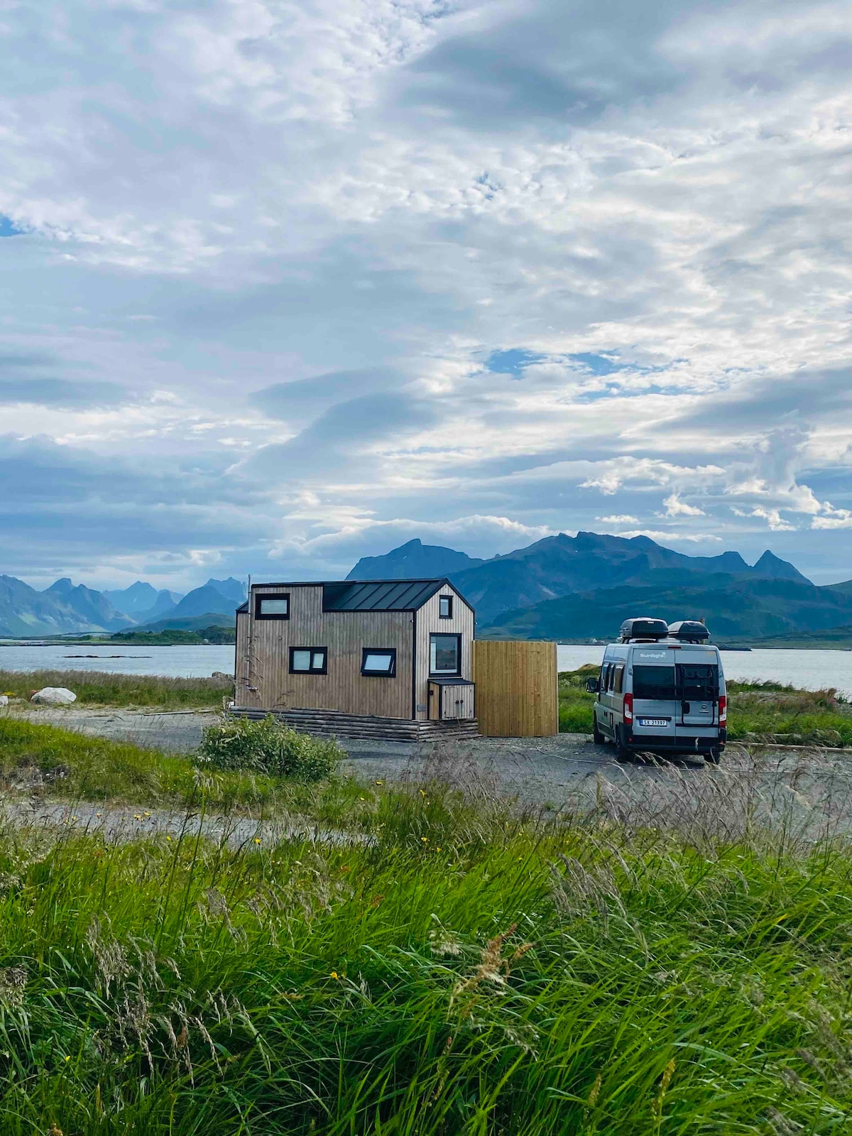 Matatagpuan ang bahay sa unang hanay na may kalikasan sa mismong sala. Bago ang bahay at nasa magandang lokasyon ito. Northern Lights sa taglamig at midnight sun sa tag-araw. Matatagpuan ang sauna sa tabi mismo ng terrace at maaaring gamitin (de-kuryente). Kapag may bagyo, medyo nanginginig ang bahay (munting bahay). Aurora na makikita mo mula sa sauna at sa bahay. May mga kapitbahay pero nakapaloob ang terrace. Makikita mo ang bahay sa Instagram; minihuslofoten