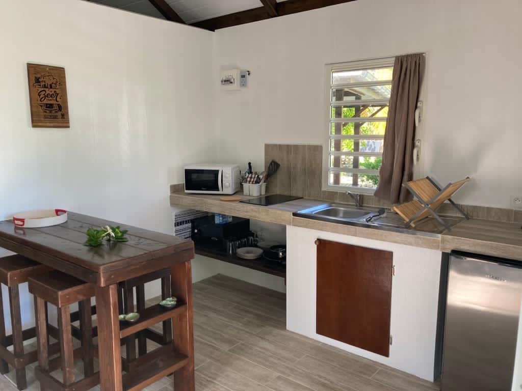 Bungalow sa mga stilts sa Ocean side malapit sa reef Max na kapasidad 3 may sapat na gulang Naka - air condition na may air mixer at solar water heater 1 queen - size na higaan 1 maliit na kusina nilagyan ng refrigerator, hob, microwave, toaster at takure. Mga ligtas na tuwalya at beach Pribadong Terrace na Inaalok: Wifi at Mga Bisikleta Malugod kang tinatanggap ni Hiria at tinutulungan kang ayusin ang iyong pamamalagi! Ilang minuto mula sa isang supermarket , isang pizzeria...