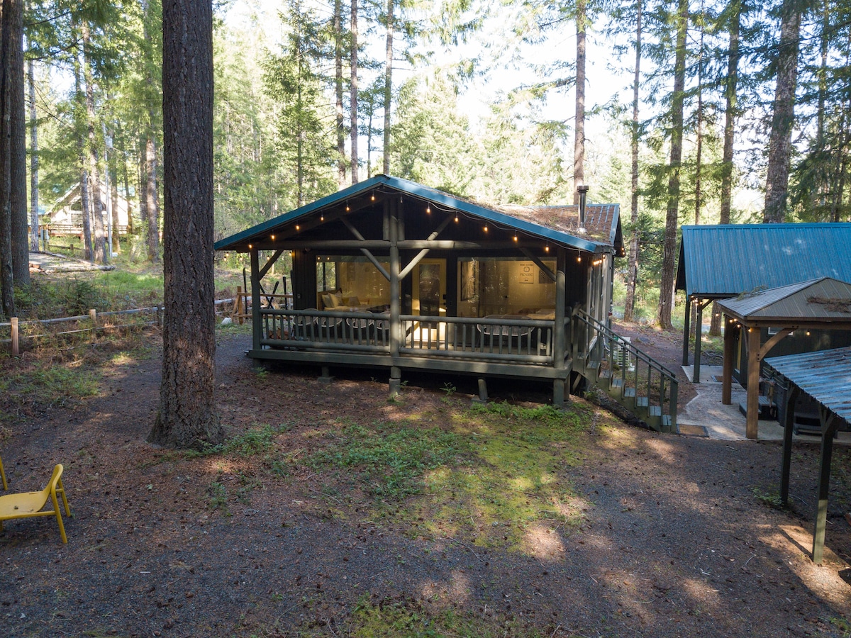 Isang maliit at maaliwalas na cabin na nasa itaas ng White Salmon River, ilang minuto lang ang layo mula sa bayan. Tangkilikin ang malawak na 180 degree na tanawin mula sa iyong pribadong maliit na forest oasis o samantalahin ang gitnang lokasyon para tuklasin ang lahat ng inaalok ng The Gorge. Inayos namin kamakailan ang pribadong bakasyunan na ito para mapanatiling komportable ang aming mga kaibigan at kapamilya. Nasasabik na kaming ibahagi sa inyong lahat ang liblib na maliit na hiyas na ito, at inaasahan naming matiyak na magkakaroon ka ng magandang pamamalagi! Heather & Eli