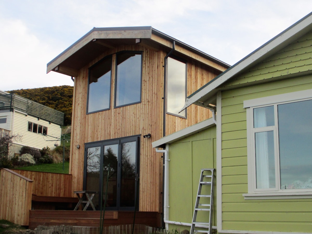 Ang Lookout ay isang marangyang self - contained na maliit na bahay na may magagandang tanawin ng daungan at back drop sa kanayunan. 18 minuto lamang mula sa Dunedin at 2 minuto mula sa mga cafe, restawran, tindahan, at pub ng Port Chalmers. May bukas na sala ang Lookout kabilang ang kusina. Compact na banyo at mezzanine na silid - tulugan na may mga nakamamanghang tanawin. Ang Lookout, ay nasa tabi ng "Sybie 's Cottage" ng isa pang listing ng AirBnB ni Allan. Ang bawat isa ay napaka - pribado at ang lugar ng paradahan ng kotse ang tanging bagay na ibinabahagi.