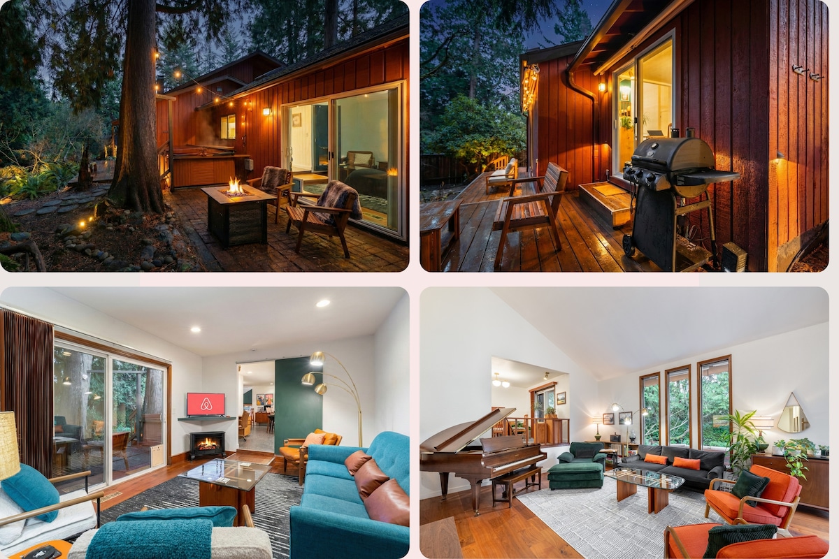 Welcome to The Warming Hut, a spacious 4-bedroom retreat near Mt. Hood, close to popular ski resorts and located in a scenic golf community. Enjoy an open-concept living area with a cozy wood-burning fireplace, fully stocked kitchen, private sauna, and a large back deck with golf course views. The climate-controlled game room offers 500+ sq ft of fun with a pool table, arcade game, TV, and comfy seating—perfect for families or friends.