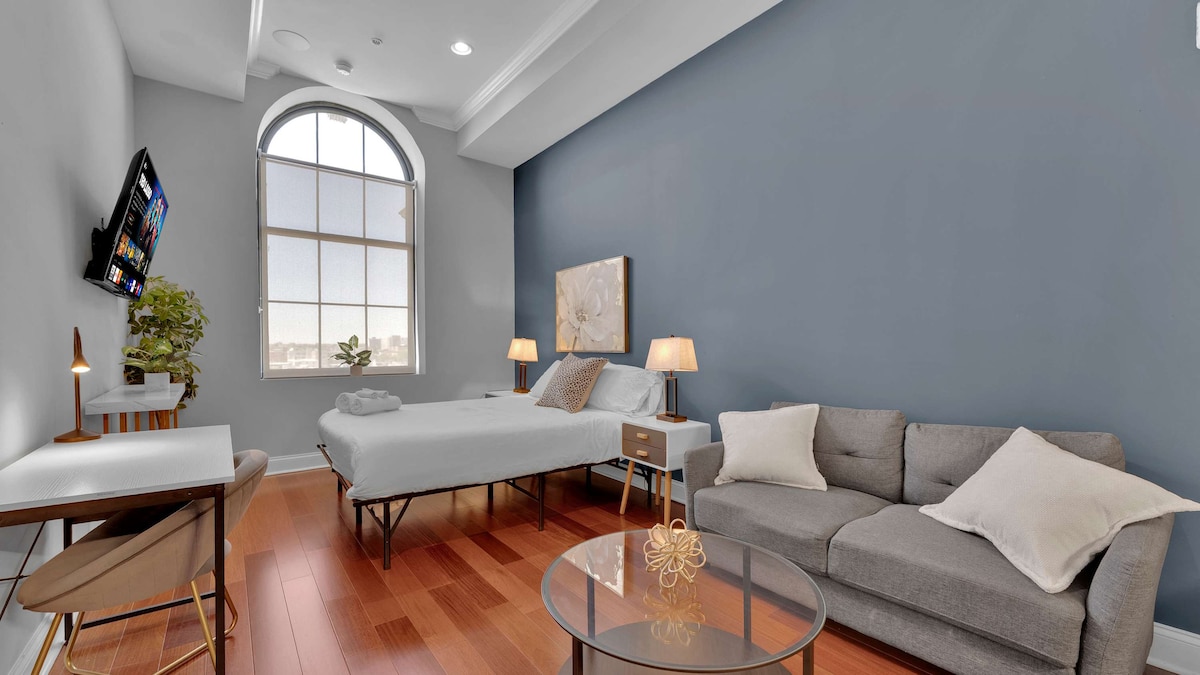 Karanasan sa Sosuite: mga amenidad sa antas ng hotel na may mga perk ng tuluyan, na ipinapares lahat sa isang walang kapantay na karanasan ng bisita. Idinisenyo ang mga sosuite para maipakita ang kasaysayan at katangian ng mga kapana - panabik na kapitbahayan kung saan matatagpuan ang mga ito, na nagbibigay ng mas mataas na pamamalagi sa ilan sa mga pinakanatatanging gusali sa Philadelphia. Tandaan: Ang mga loft - style unit na ito ay may naka - istilong, bukas na pakiramdam na may mataas na kisame at nakalantad na mga tubo. Isang head - up lang - maaaring may kaunting ingay paminsan - minsan.