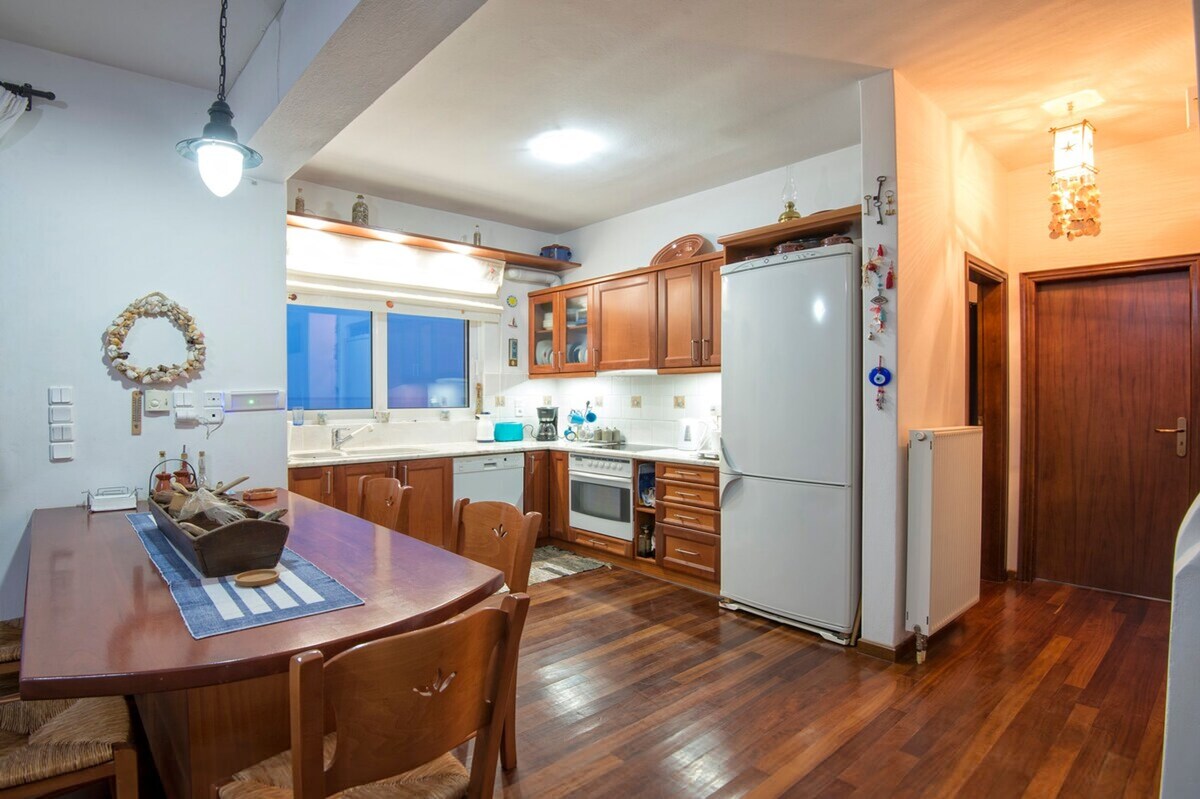 A 2 bedroom seafront holiday home ideal for 4 to 5 people, with direct access to a private beach, located in a wonderfully serene surrounding overlooking the sea, 1h 15min drive away from Athens International Airport. The house enjoys a panoramic view to the sea, is renovated and is professionally designed and decorated. NOTE: In case your desired dates are not available, check my other listings of two brand new properties adjacent to this one!