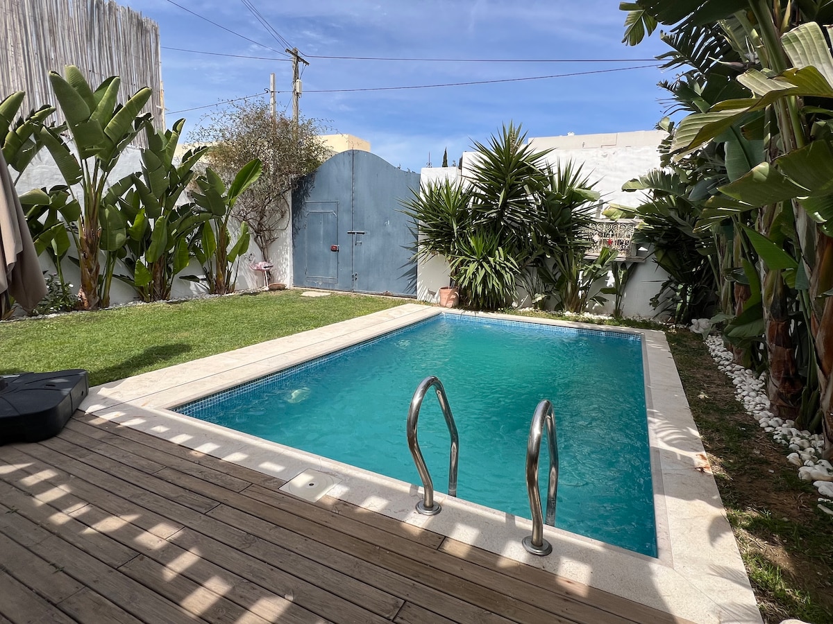 Para sa upa villa ng 200 m² ganap na refurbished, isang kalye mula sa paninirahan JANNET, sa likod ng hotel nahrawess HAMMAMET North well equipped sa isang binantayan residential area, na binubuo ng isang living room, 4 silid - tulugan, kitchenette, SDE, SDD (Italyano shower), hardin, panlabas na storage room, panlabas na shower at toilet at pool . Nilagyan ito ng mga air conditioner para sa tag - init , koneksyon sa ADSL WiFi at satellite TV. Matatagpuan ito sa likod lamang ng Nahrawes Hotel sa North Hammamet.