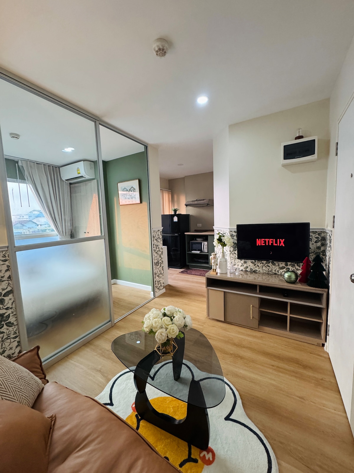 Enjoy stay, conveniently located in Sukhumvit 107 rd. This 29 sqm 1-bedroom is ideal for those who want easy access to Bangkok city center. Fully equipped kitchen, cozy living area, private balcony. You can reach shopping malls, restaurants within minutes. On some weekdays, there may be construction noise outside the building between 9:30 AM – 4:30 PM. No noise during weekends. Closing the balcony door helps block outside noise very effectively and should not disturb your stay during the day.