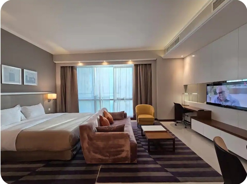 Maligayang pagdating sa isa sa mga pinakamahusay na kapitbahayan sa Bahrain, na napapalibutan ng mga hotel at restawran. Makakakita ka ng iba 't ibang serbisyo at atraksyon sa malapit, kabilang ang Juffair Mall at gasolinahan na may mga tindahan, supermarket, parmasya, food court, restawran, cafe, sinehan, at kids' zone - 5 minutong lakad lang ang layo. Para sa mas matatagal na booking, kasama ang serbisyo sa paglilinis.