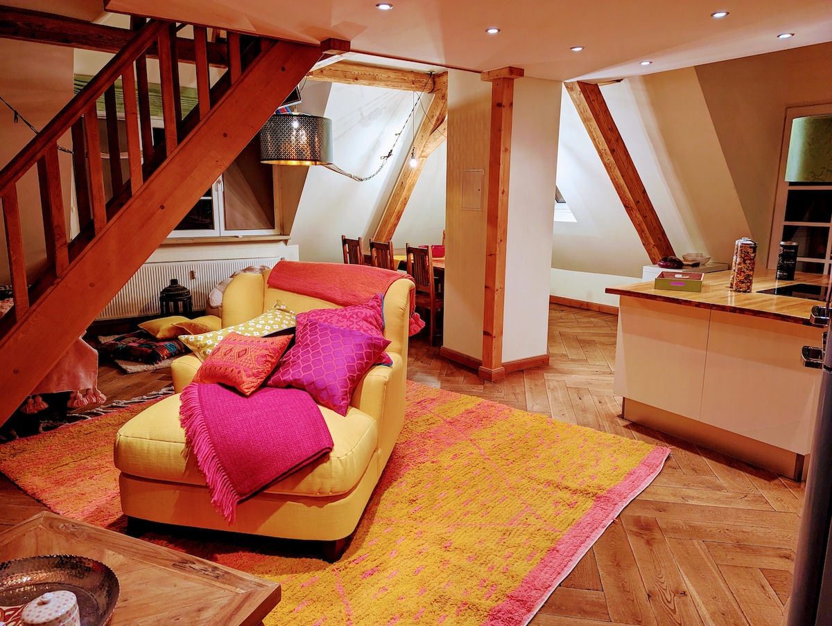 Erholung in Dahn: hier werden Sie sich wohlfühlen! Unsere im Sommer 2021 eingerichtete 70 m² Ferienwohnung befindet sich im 2. OG über dem Bioladen und ist barrierefrei erreichbar (Aufzug). Den Schlüssel für die Wohnung bekommt man im Bioladen zu den Öffnungszeiten. Falls Sie außerhalb der Öffnungszeiten anreisen bitte kurz um Mitteilung dann wird der Schlüssel in der Box hinterlegt(siehe letztes Bild).