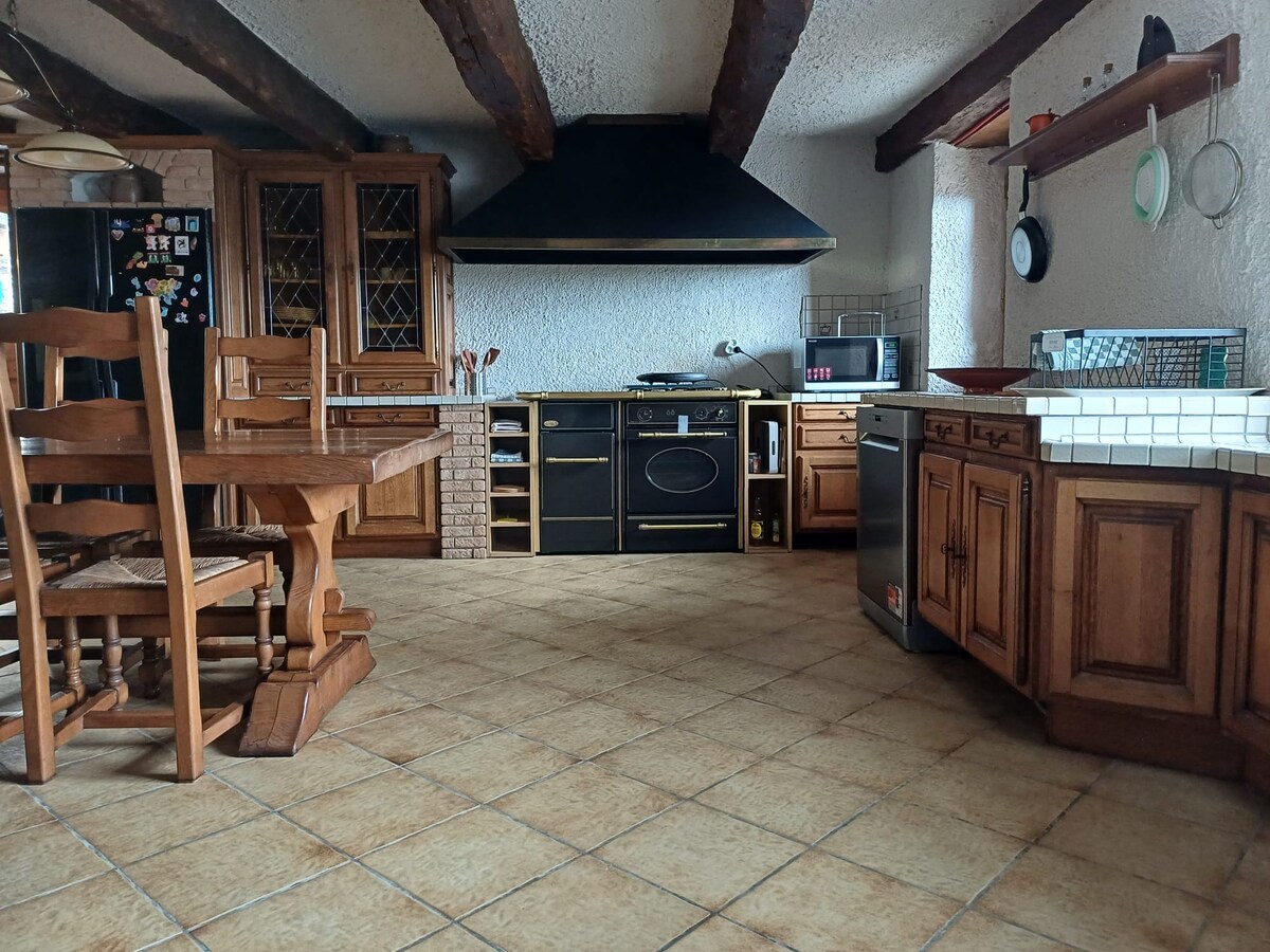 Halika at magrelaks sa bahay na ito na matatagpuan sa isang kaaya - ayang setting. Ang malaking swimming spa na pinainit sa 35/37 degrees ay makakalimutan mo ang iyong pang - araw - araw na buhay. Aakitin ka ng mga amenidad: - Silid - tulugan: 2 metrong kama na may hugis ng memorya at tagsibol, matalik na ilaw. - Banyo: Shower, double vanity sink, dressing table, toilet ( isa pang independiyenteng toilet sa bahay). - Nilagyan ng kusina - Sala: piano, foosball table, board game, TV. Alexa Connected speaker.