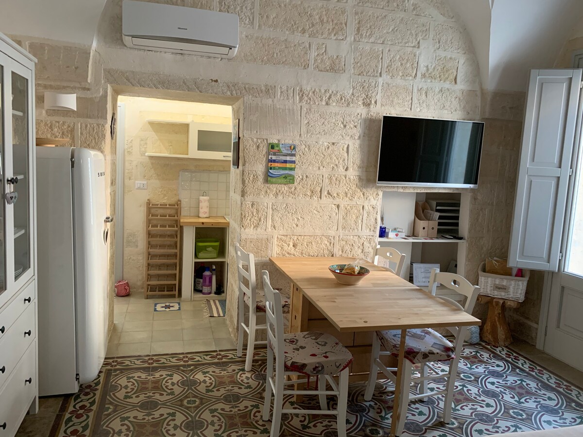 In una villa cIrcondata dai colori della campagna salentina e nel cuore del Salento si offre l’intero piano leggermente seminterrato con ampie finestre di 100 mq curato in ogni dettaglio unito ad un'accoglienza calorosa e cordiale, tipica della zona. Ideale soprattutto per famiglie con bambini per il grande giardino recintato un boschetto con amache messo a disposizione in cui i bambini possono giocare senza alcun pericolo nonché fare visita alle galline ai gatti e giocare con un cane.