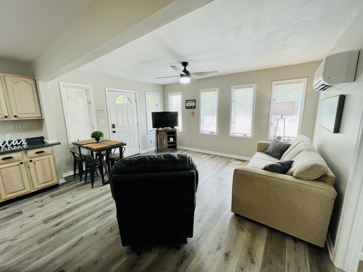 Naka - istilong simple at may gitnang kinalalagyan sa Murray, ang bahay na ito ay isang madaling 2 minutong biyahe mula sa Murray State Campus. Magmaneho lamang ng ilang milya papunta sa pinakamahuhusay na restawran at tindahan ng Murray, at samantalahin ang kagandahan ng LBL (National Recreation Area) ay nagpapakita ng 20 minuto sa kalsada. Nag - aalok ang kabuuan ng tuluyang ito ng kumpletong kusina, pribadong keypad entry, itinalagang paradahan, washer/dryer, TV/Wi - Fi (komplimentaryong Netflix), at mga pangunahing amenidad na kailangan mo para sa iyong sarili.
