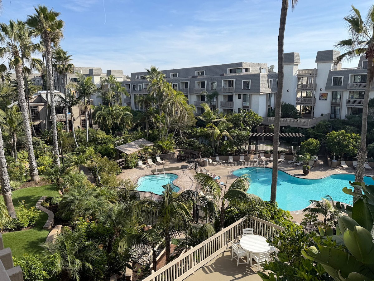 Clean modern Space with a panoramic view of the harbor and beach! NORTH COAST VILLAGE, located in Oceanside, California, this recently fully remodeled beach dream has 1 Bedroom, 1 bath, sleeps 4, full kitchen, gas fireplace and ocean view balcony G unit offers you a beach resort lifestyle. Amenities at North Coast Village include patios and balconies overlooking the ocean, direct beach access, 24-hour security, a heated pool and jacuzzi, exercise gym room, recreation game rooms, putting greens, fitness center, and an outdoor BBQ grill area supplied with beach toys, beach chairs, beach umbrella, boggie boards, etc. The lush tropical grounds with its waterfalls and soothing koi ponds, make this community a serene place to vacation. Only 45 minutes to Disneyland, 30 minutes to Seaworld, and Legoland is only 10 minutes away, no pets & no smoking. Rental terms: 3 night minimum June thru August $200 Monday-Thursday and $220 Friday-Sunday Holidays and special events $200 to $220 Offer weekly and monthly discounts cleaning fee $150 fully refundable security deposit $300 no pets allowed (URL HIDDEN) You have access to all amenities, pools, barbecues, fitness center and sauna. There is also an event space that can be booked separately. Let us know if you wish to hold an event and we can put you in touch with the management. Please do not hesitate to reach out for any needs, questions, tips while in town. The apartment is in a great complex with a relaxed beach resort vibe. The property is located right by the water. There is a community amphitheater nearby that holds summer outdoor movies and concerts. There are many great restaurants and shops in walking distance. You are close to the train station and bus station. You are close to everything so feel free to travel light. Fast Wifi Cable for Sports and Movies Apple TV for movies, games and music for when you just want to stay in.