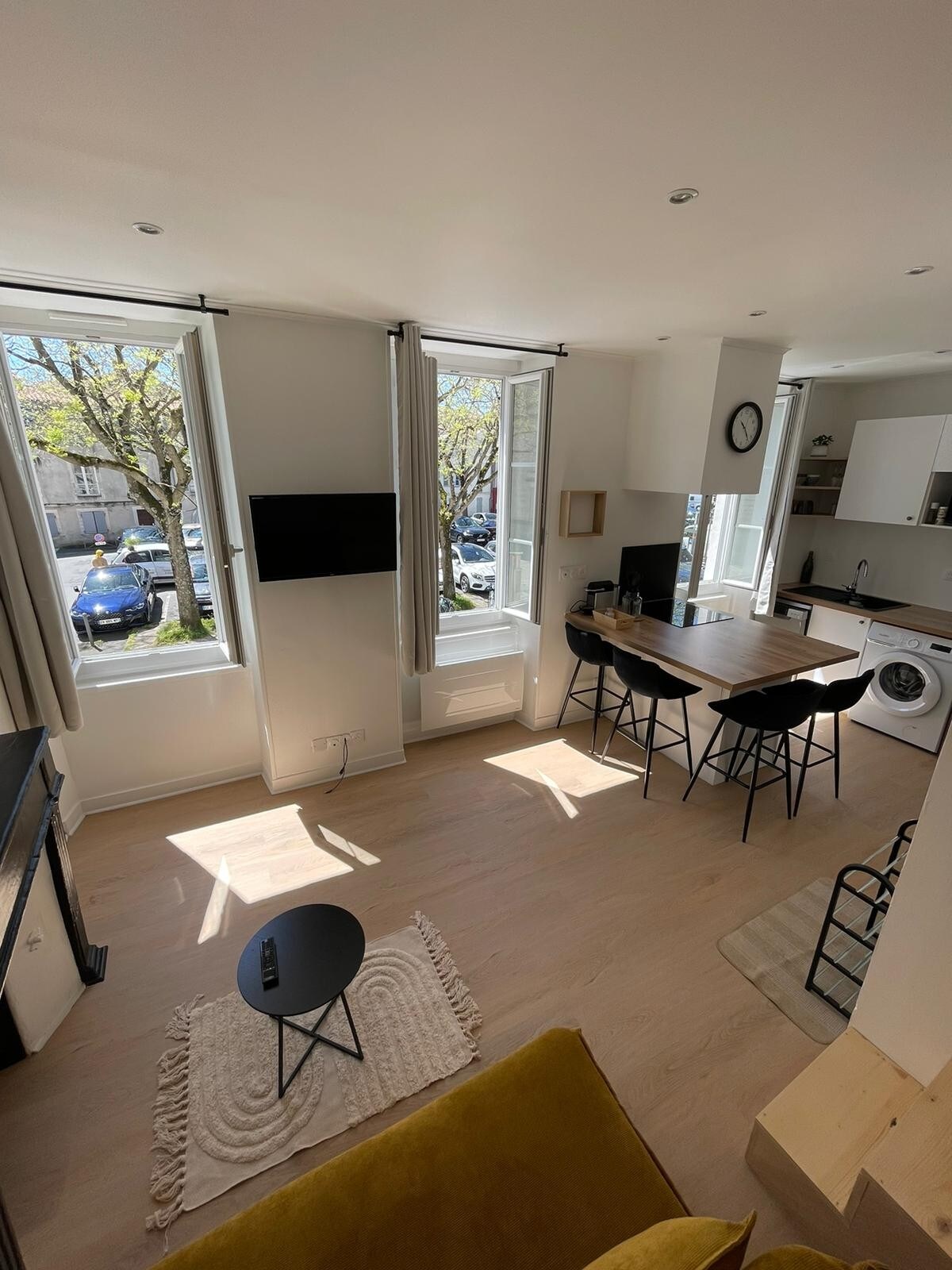 Appartement climatisé entièrement rénové à neuf en 2024 ✅ Place de parking privée gratuite Meublé avec goût classé 3 étoiles pour accueillir 2 personnes. Situé au 1er et dernier étage d'une petite résidence calme. le lit sera fait et les serviettes seront fournies À 17 minutes à pied du centre-ville et de la gare de La Rochelle. Première plage à 3,3 km grande douche climatisation silencieuse Fibre Tv Literie Bultex cuisine équipée Nespesso Etc Logement plein de charme à découvrir.