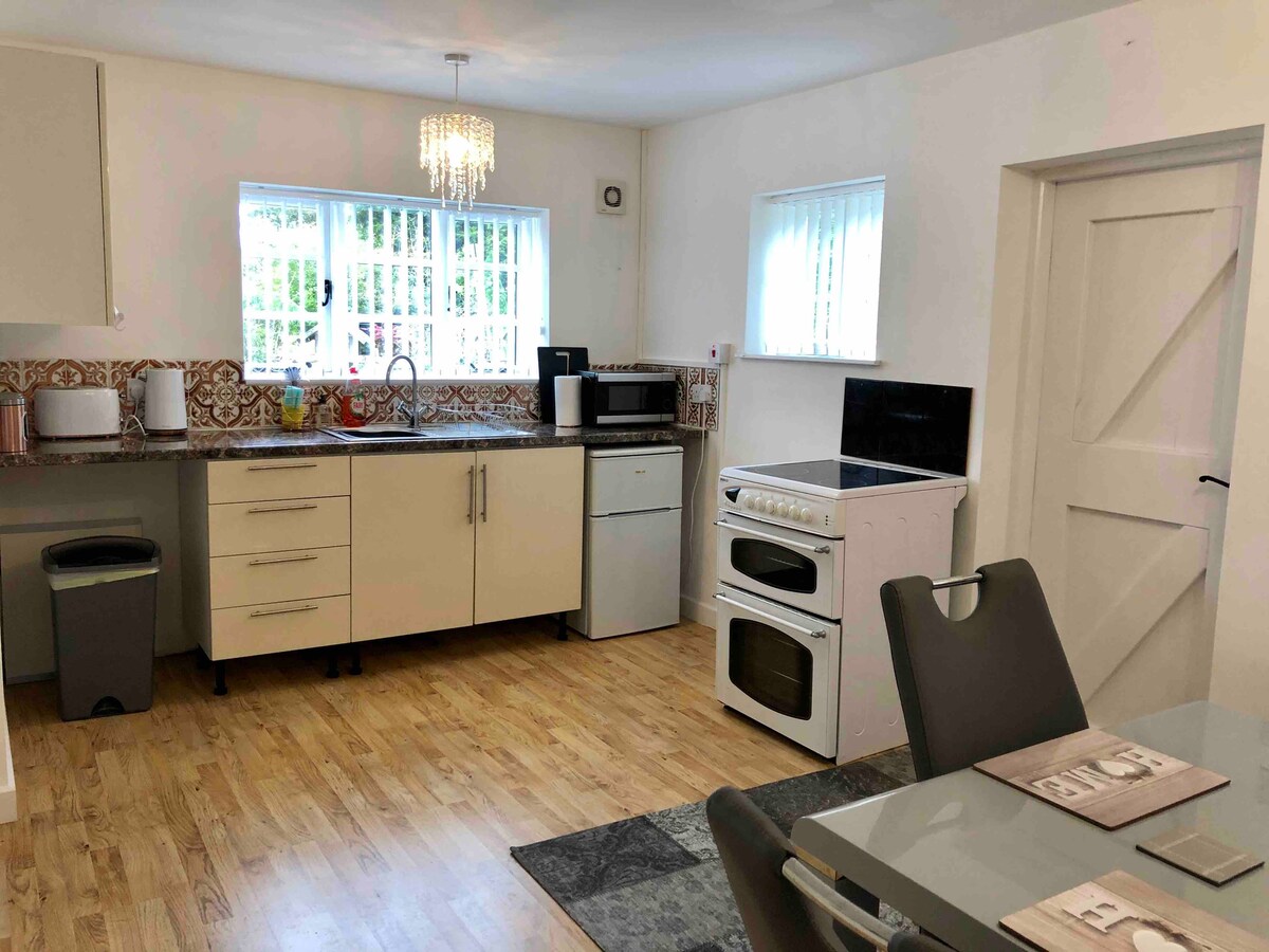 Maganda, tagong, bukas na plano na bahay ng coach na may kamangha - manghang tanawin ng hardin at mga bukid. Ang perpektong romantikong getaway ay may bagong kusina na may dishwasher, microwave at retro fridge. Ang lounge/dining area ay may maaliwalas na log burner, Wi - Fi, 43" TV at mga bintana ng Velux. Ang double bedroom ay may mapagbigay na espasyo sa wardrobe at banayad na ilaw. Ang isang naka - istilo modernong banyo ay nagsasama ng shower, basin ng kamay at % {bold. Ang malaking patyo ay may dining suite at hot tub.