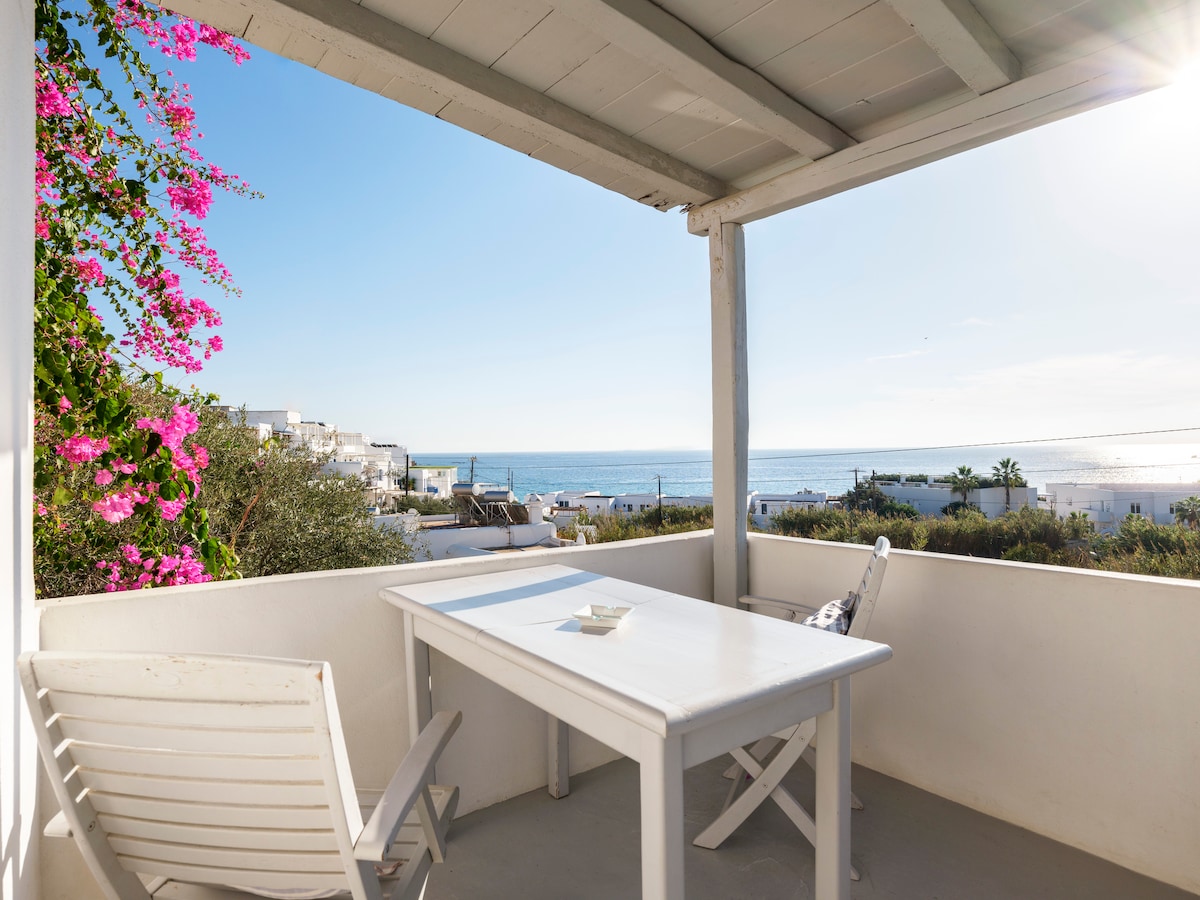 May perpektong lokasyon na Cycladic house para sa hanggang apat na tao kung saan matatanaw ang lumang daungan at magagandang paglubog ng araw. Ganap na na - renovate noong 2021 at kumpleto ang kagamitan sa lahat ng pangunahing amenidad, na handang tumanggap sa iyo. Isang perpektong lokasyon na matutuluyan sa pinakamatahimik na kapitbahayan ng bayan ng Mykonos at kasabay nito, ilang hakbang lang ang layo mula sa sentro nito.